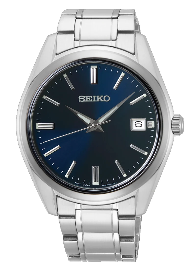 Klasyczny zegarek męski na bransolecie Seiko New Link SUR309P1. Wszechstronny model pasujący zarówno do codziennych, jak i formalnych sytuacji. Jego obudowę tworzy wytrzymała i hipoalergiczna stal szlachetna klasy 316L. Z pięciu rzędów bransolety trzy są wyszczotkowane, a pozostałe wypolerowane, dodając elegancki i kreatywny akcent. Szczotkowanie cechuje także 40-milimetrową kopertę, z kolei polerowanie bezel, zachowując konsekwencję w wykończeniu.
