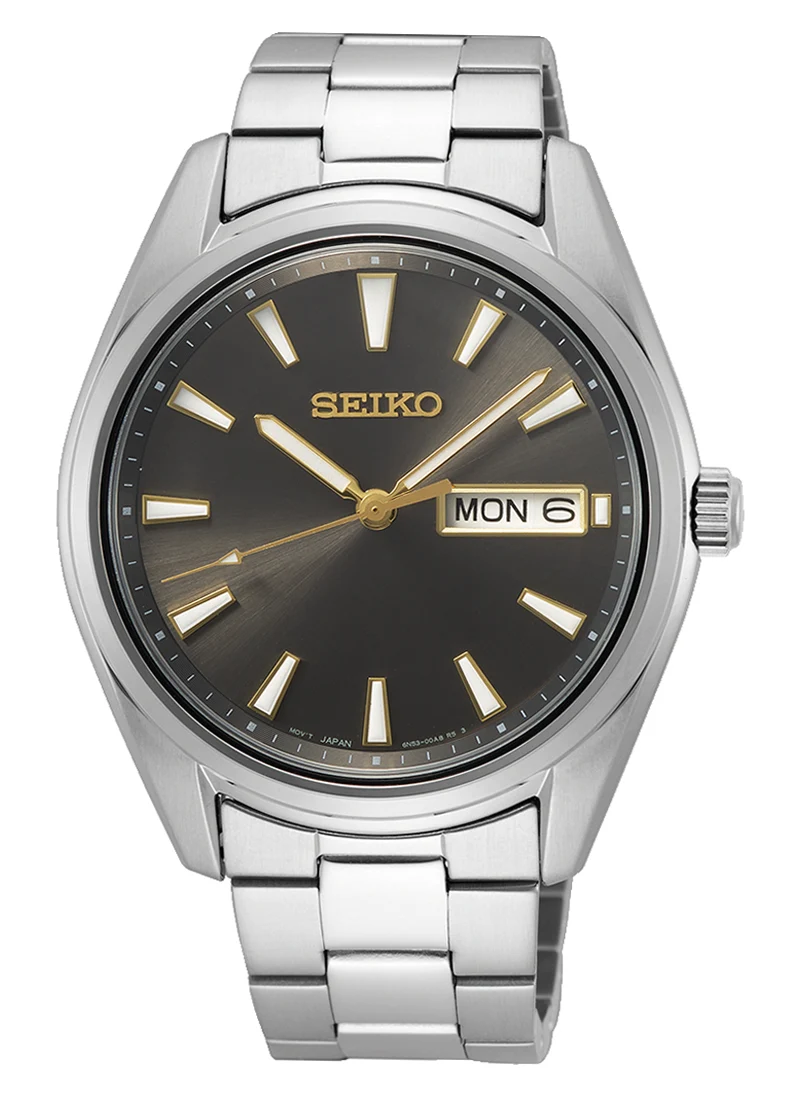 Seiko Classic SUR343P1 to elegancki zegarek z grafitową tarczą i złotymi akcentami. Model wyposażono w szkło szafirowe oraz funkcję day-date. To stylowa propozycja do codziennego, klasycznego ubioru.