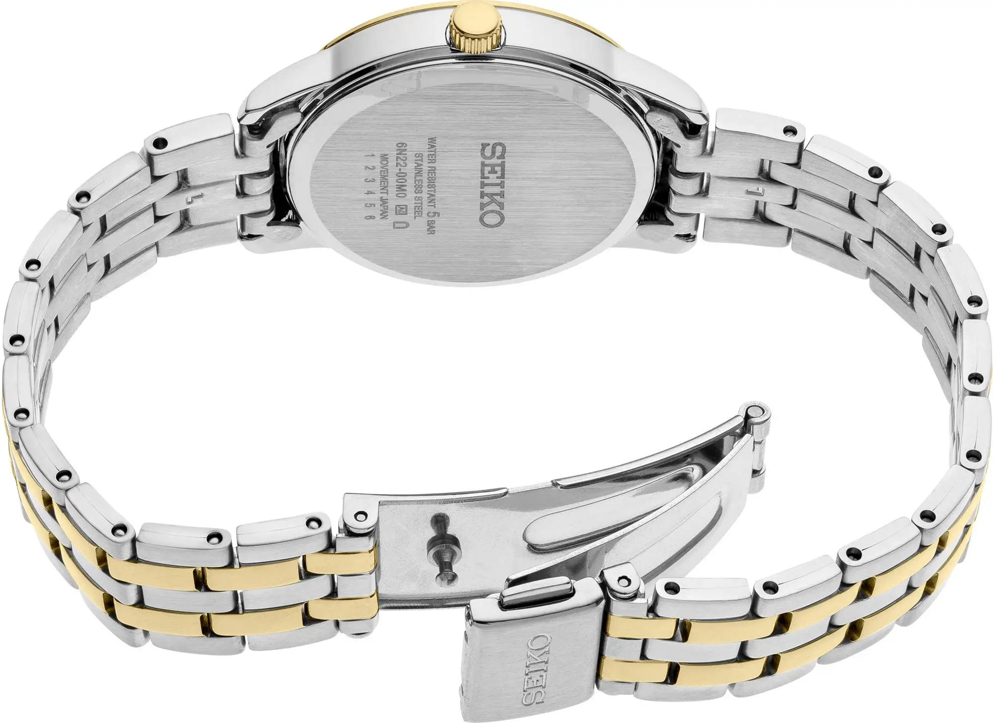 Zapięcie motylkowe z przyciskami zwiększa ergonomię i bezpieczeństwo noszenia, szczególnie podczas intensywnego dnia. To wybór dla kobiet poszukujących lekkiego i eleganckiego zegarka Seiko o bi kolor wykończeniu, które podkreśla zarówno codzienny styl, jak i bardziej formalne zestawy.