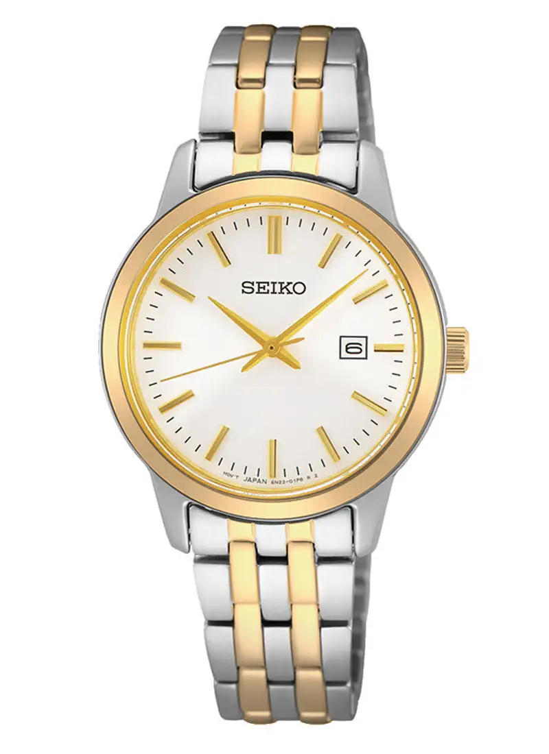 Seiko Classic SUR410P1 to elegancki zegarek damski o biżuteryjnym charakterze i lekkiej formie. Czysta tarcza i złocone detale tworzą klasyczny i ponadczasowy wygląd. To model idealny do codziennego stylu.
