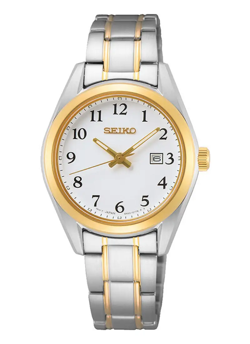 Seiko Classic SUR466P1 to damski zegarek o klasycznej estetyce z białą tarczą i złotymi akcentami. Świetnie sprawdzi się jako elegancki dodatek na co dzień.