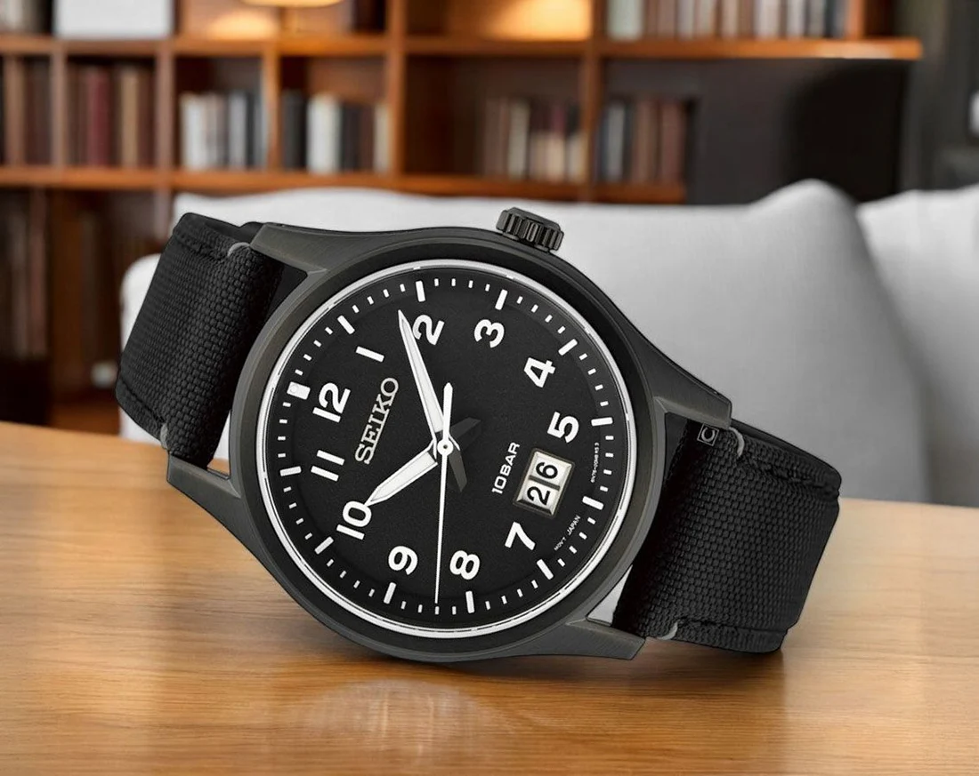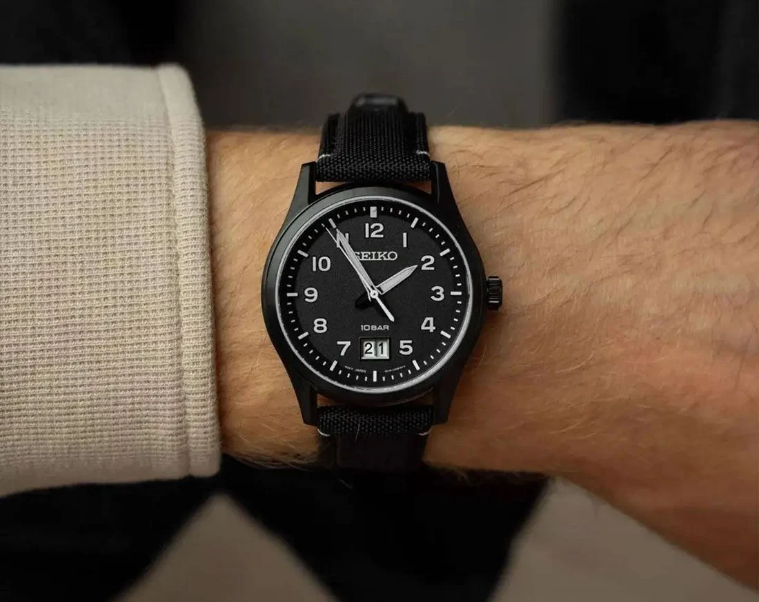 Męski zegarek Seiko Classic SUR571P1 to propozycja dla tych, którzy lubią połączenie prostoty, solidności i czytelności w każdej sytuacji. Czarna tarcza z dużymi cyframi arabskimi prezentuje się wyjątkowo przejrzyście, a kontrastowe wskazówki z powłoką luminescencyjną zapewniają widoczność nawet po zmroku. Model utrzymany w stylistyce field watch wyróżnia się surową funkcjonalnością, która sprawdza się zarówno na co dzień, jak i podczas plenerowych aktywności.