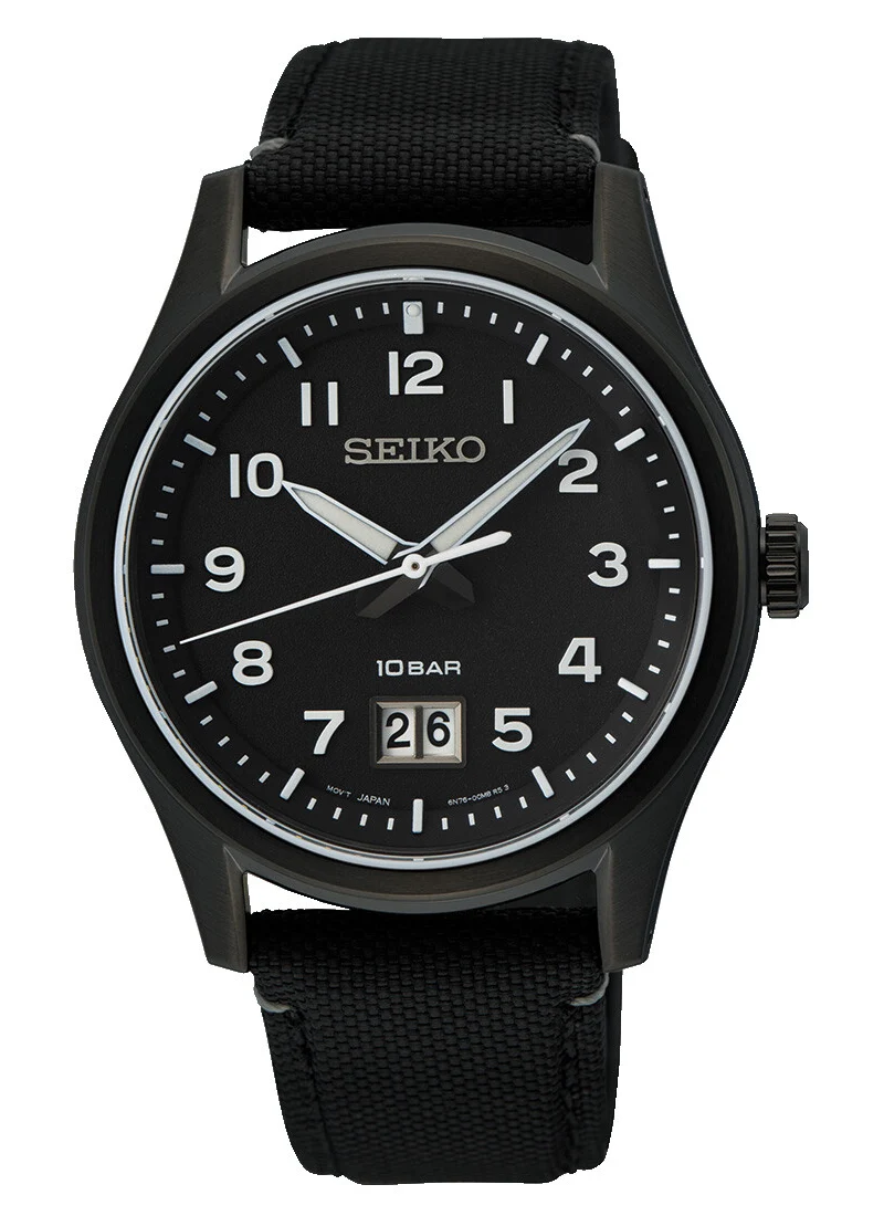 Na tarczy umieszczono powiększony datownik typu big date – rzadziej spotykane rozwiązanie w tej klasie, które zwiększa komfort codziennego użytkowania. Zegarek męski Seiko SUR571P1 to idealny wybór dla osób oczekujących niezawodności i czystej funkcjonalności, zamkniętych w nowoczesnym i lekko taktycznym wzornictwie.