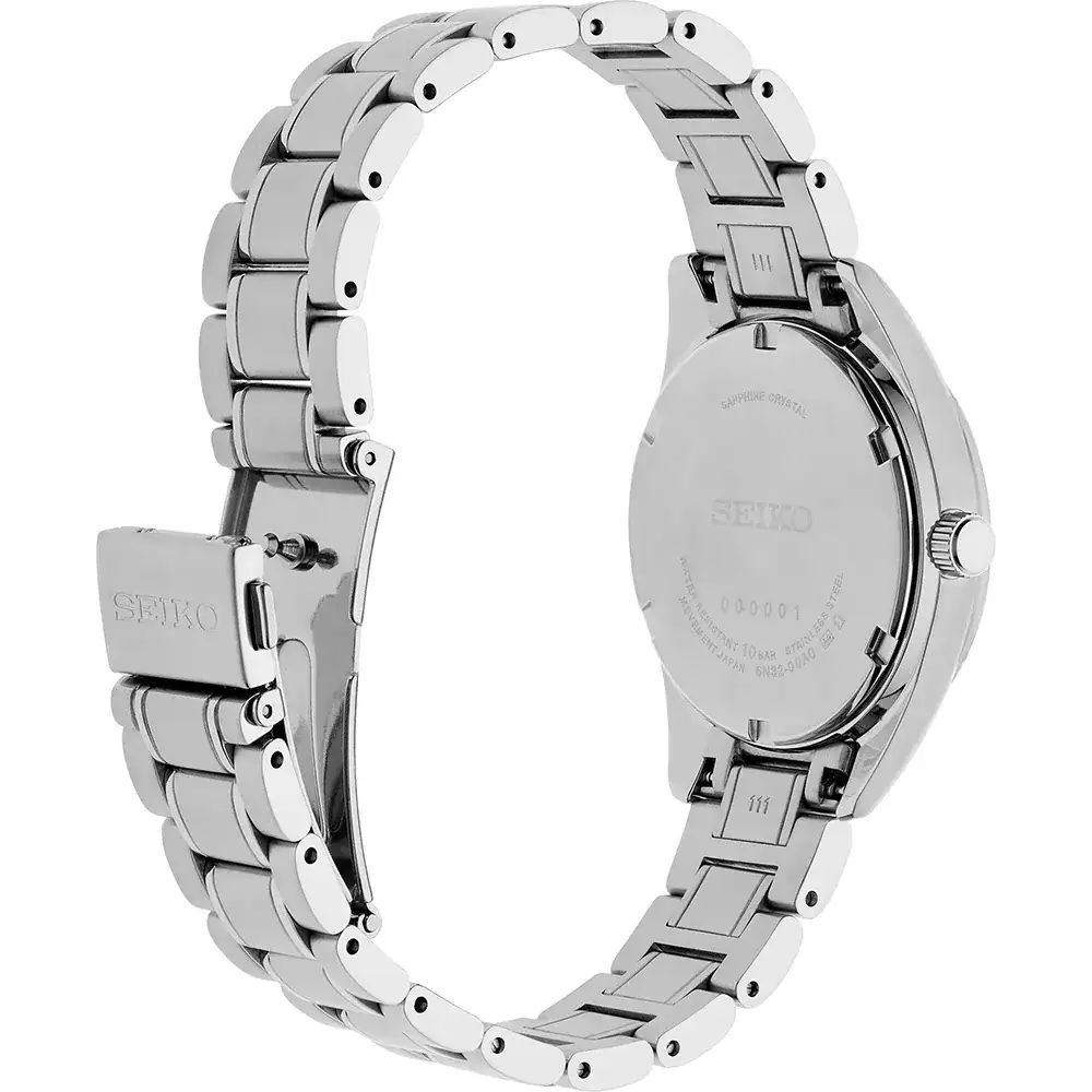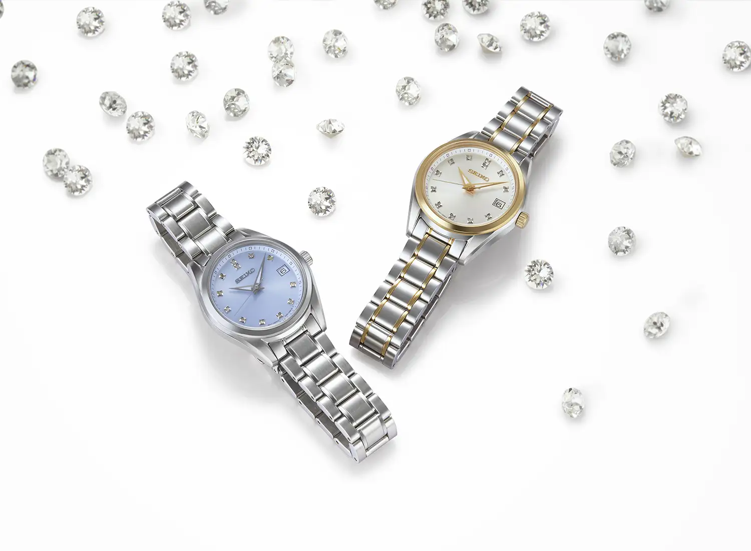 Szczególną uwagę przyciąga zestaw 12 naturalnych diamentów, pełniących funkcję indeksów godzinowych. Kamienie są starannie oszlifowane, dzięki czemu odbijają światło w sposób kojarzący się z elegancką, klasyczną biżuterią. Stalowa koperta o średnicy 32 mm została zestawiona ze szkłem szafirowym odpornym na zarysowania, a zakręcany dekiel zwiększa bezpieczeństwo i trwałość konstrukcji. Całość dopełnia bransoleta o gładkim, dopracowanym profilu, wygodna w codziennym noszeniu.