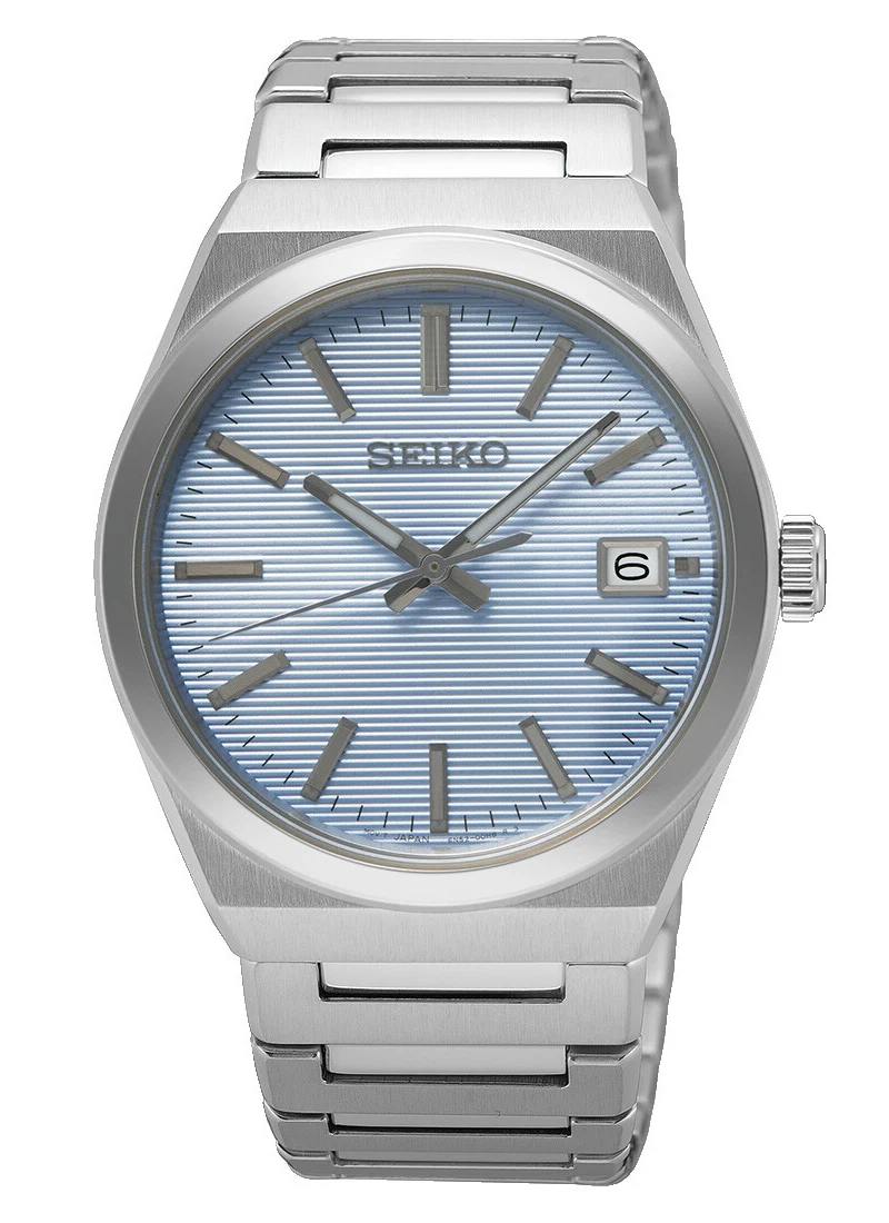 Seiko Classic SUR599P1 to męski zegarek Seiko, który łączy nowoczesną elegancję z subtelnym sportowym akcentem. Błękitna tarcza w odcieniu Tiffany blue wyróżnia się wyrazistym, poziomym wzorem, tworząc efektowną strukturę, która zmienia charakter w zależności od kąta światła. Harmonijny układ indeksów i wskazówek wzmacnia minimalistyczną estetykę, a kompaktowa koperta zapewnia wyjątkową wygodę noszenia.