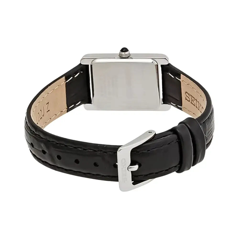 Model wyposażono w czarny, skórzany pasek z fakturą aligatora, który podkreśla jego wyrafinowany styl i dodaje nuty szykownej elegancji. Lekka konstrukcja – zaledwie 15 g – sprawia, że zegarek jest niemal niewyczuwalny podczas noszenia. Seiko Classic SWR107P1 doskonale sprawdzi się jako codzienny towarzysz oraz dyskretny dodatek do formalnych i wieczorowych stylizacji, wpisując się w oczekiwania kobiet, które cenią klasykę w nowoczesnym wydaniu.
