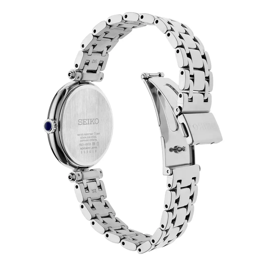 Seiko Classique SRZ553P1 jest idealnym wyborem dla kobiet, które cenią klasykę, ale szukają zegarka wyrazistego pod względem estetycznym. To propozycja zarówno do eleganckich zestawów, jak i do codziennych stylizacji, kiedy zależy Państwu na dodatku o wyczuwalnym biżuteryjnym charakterze. Model przyciąga subtelnym blaskiem, wysoką jakością wykonania oraz czytelną, harmonijną formą.