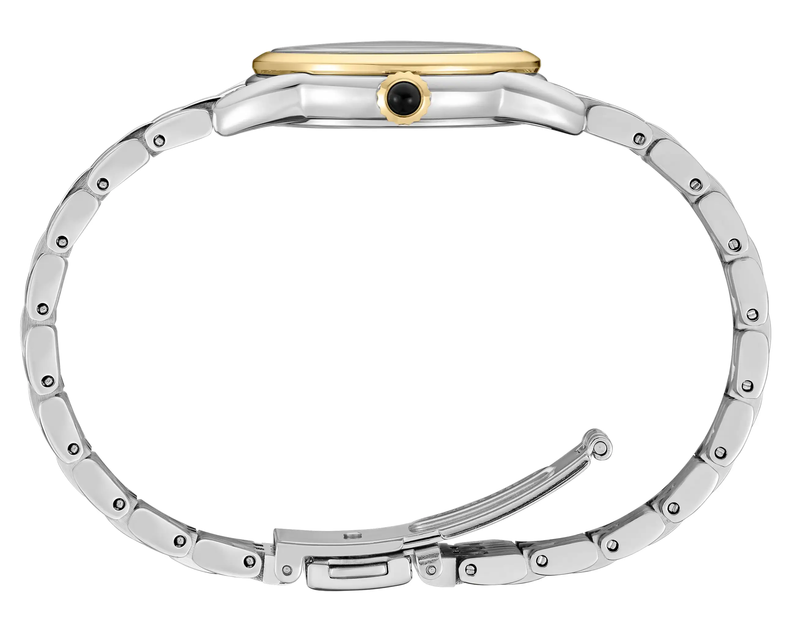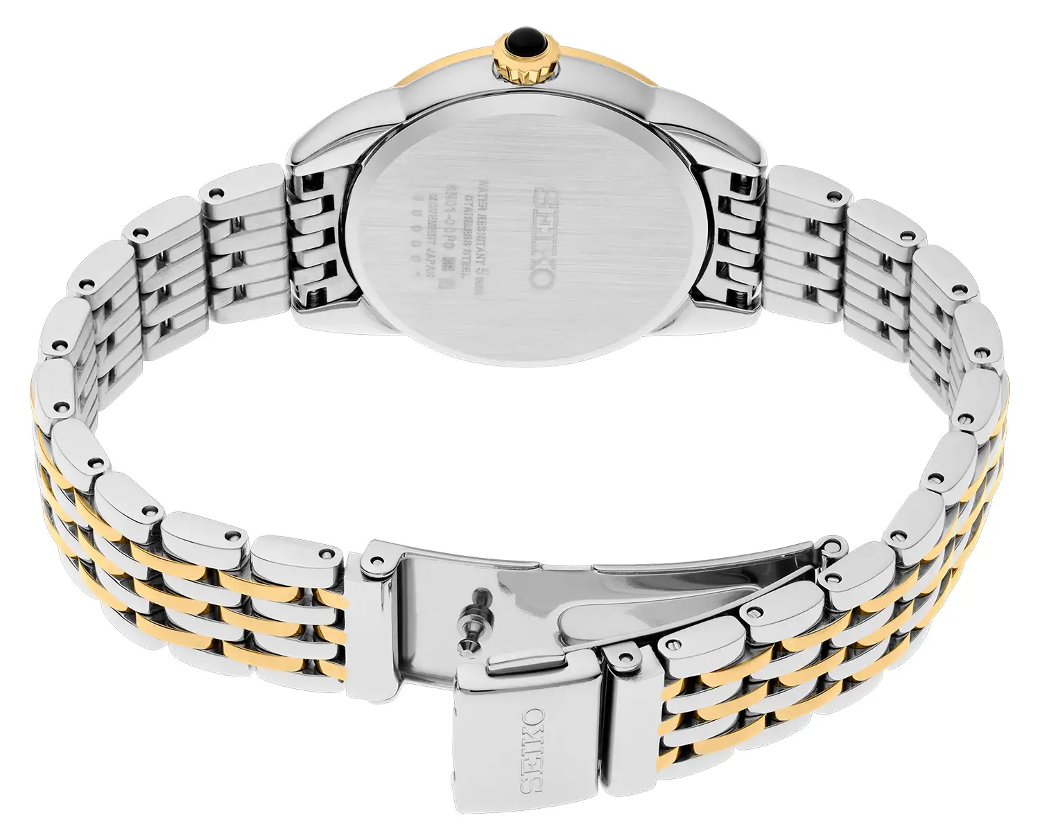 Zegarek damski Seiko Classique SUR562P1 to propozycja dla Pań, które lubią klasyczny styl wzbogacony eleganckimi detalami. Dwukolorowa kompozycja srebra i żółtego złota nadaje zegarkowi ponadczasowego charakteru, a biżuteryjna bransoleta tworzy lekki, wyrafinowany wygląd. Model wpisuje się w estetykę retro, jednak zachowuje współczesną wygodę, jakiej oczekuje się od codziennego czasomierza.