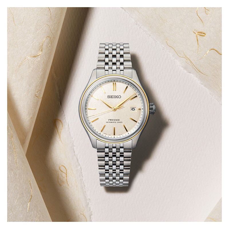 Elegancja w najczystszej formie i japoński charakter to zegarek męski Seiko Presage Classic Series Automatic SPB478J1. Ten model z kolekcji Seiko Presage Classic Series Automatic czerpie inspirację z bogatej tradycji japońskiego zegarmistrzostwa, łącząc klasyczną stylistykę z wyjątkowym kunsztem wykonania. Już na pierwszy rzut oka urzeka harmonią proporcji i dopracowanymi detalami: koperta o ponadczasowej linii skrywa magiczny świat precyzyjnego mechanizmu, a biała tarcza zdobiona subtelną fakturą jedwabiu nawiązuje do estetyki ręcznie tkanych tkanin. To więcej niż zwykły czasomierz – to prawdziwy Seiko zegarek japoński, w którym zaklęto ducha elegancji i filozofię "ma" (piękna prostoty) prosto z Kraju Kwitnącej Wiśni. Dzięki temu Seiko zegarek męski wyróżnia się charakterem, obok którego nie sposób przejść obojętnie.
