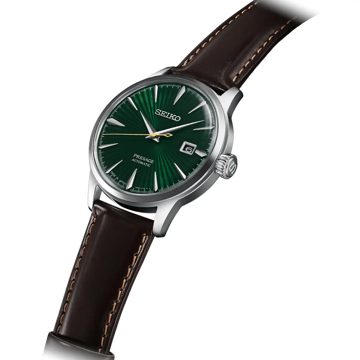 Seiko Presage Cocktail Time SRPD37J1, znany również jako Seiko Presage Mockingbird, to elegancki zegarek inspirowany klasycznym koktajlem „Mockingbird” – połączeniem tequili, mięty i limonki. Jego głęboka, zielona tarcza nawiązuje do świeżości i harmonii tego drinka, oddając zarazem artystyczny charakter japońskiego rzemiosła zegarmistrzowskiego.