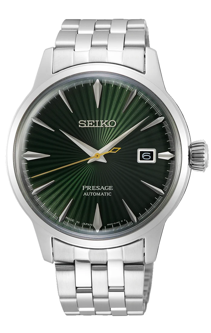Seiko Presage SRPE15J1, inspirowany koktajlem Mockingbird, łączy zieloną tarczę z mechanizmem 4R35 i elegancją japońskiego rzemiosła.