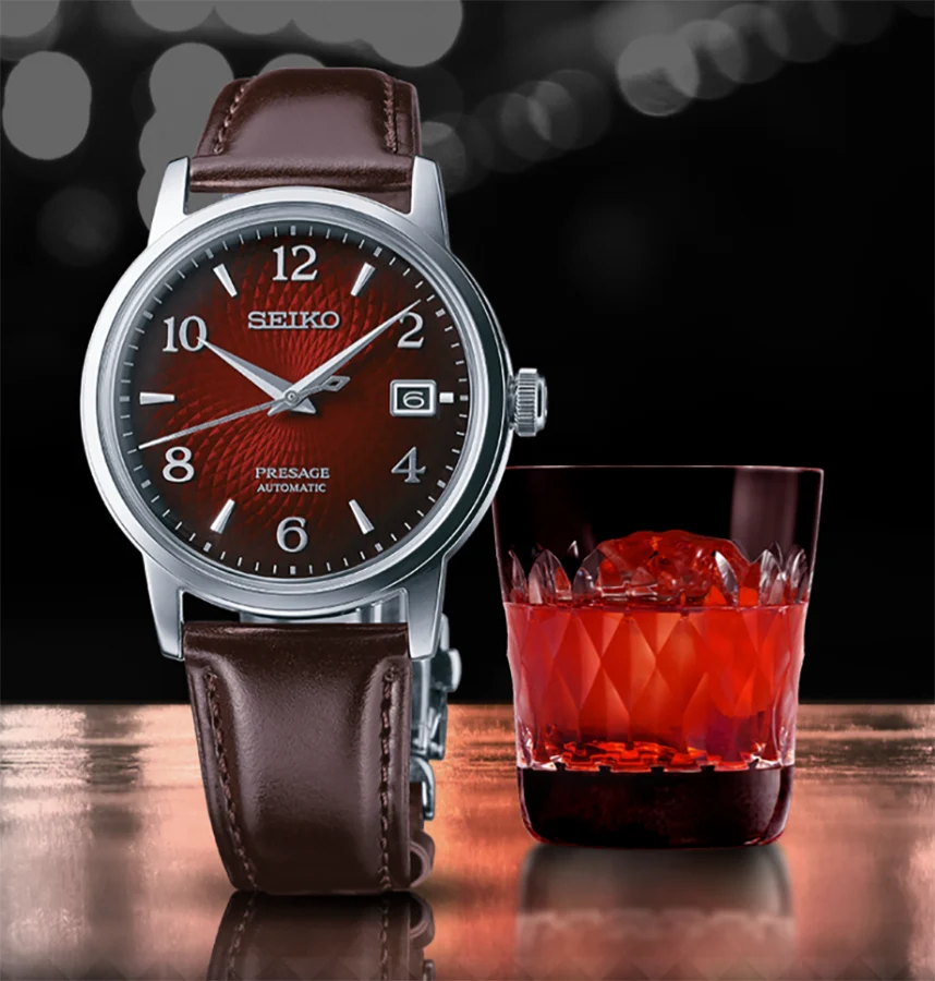 Seiko Presage Cocktail Time SRPE41J1, znany także jako Seiko Presage Negroni, to wyjątkowy zegarek inspirowany klasycznym włoskim koktajlem o głębokim, rubinowo-brązowym odcieniu. Model ten stanowi hołd dla japońskiej kultury koktajlowej, w której estetyka, harmonia i precyzja stanowią jedność – tak jak w zegarmistrzowskiej tradycji Seiko.