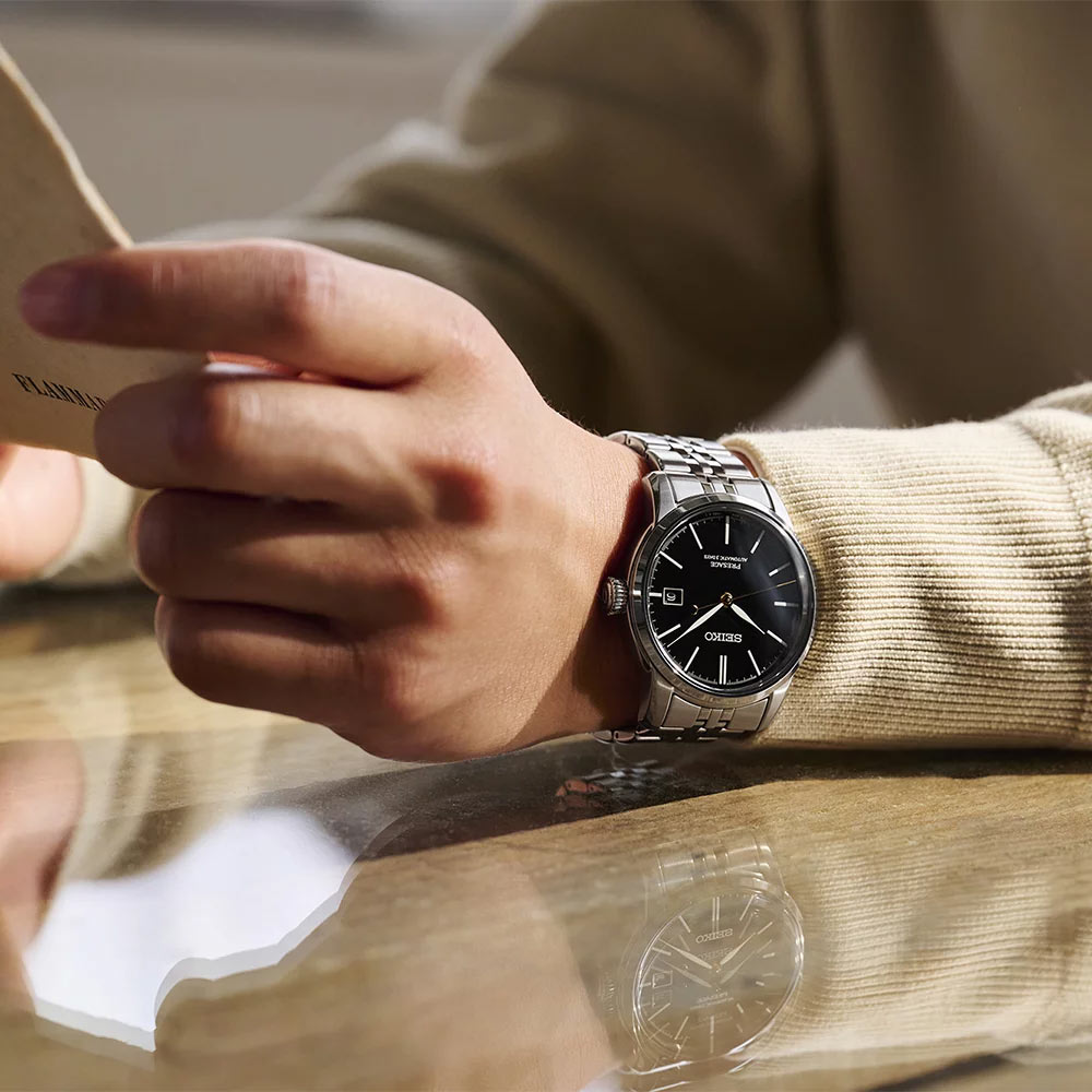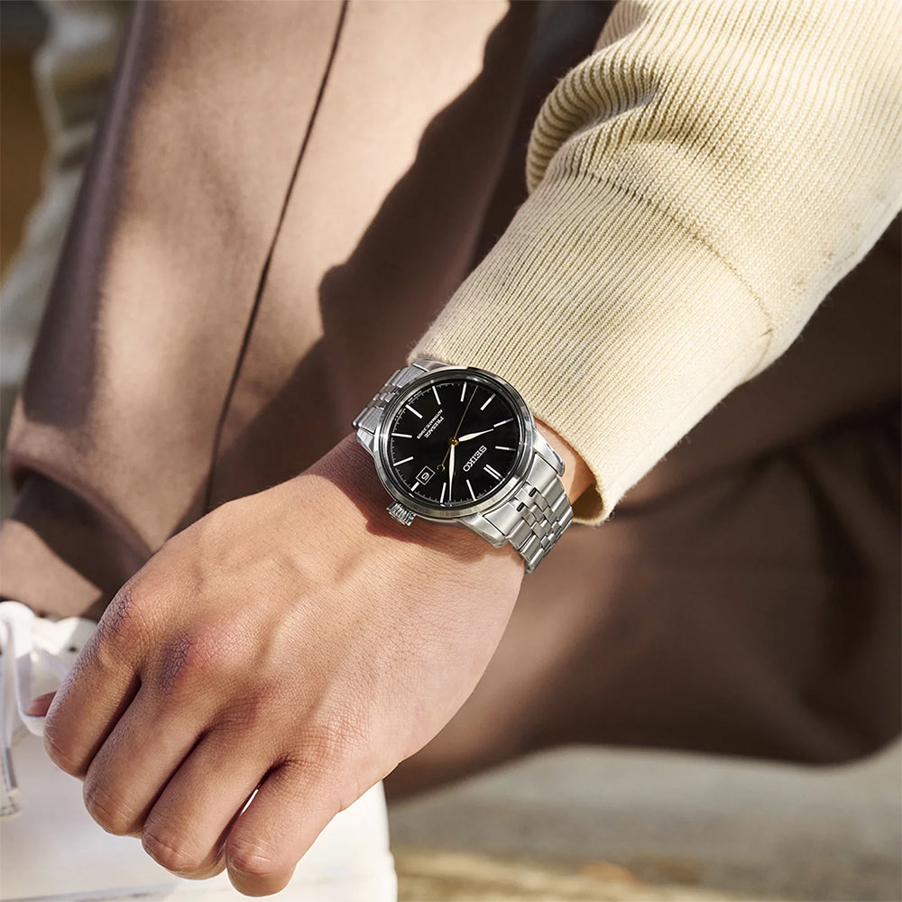 Seiko Presage: Ponadczasowy wygląd, precyzyjne mechanizmy zegarmistrzowskie; minimalistyczne projekty zegarków z wyraźnym japońskim estetyzmem. To nie tylko narzędzie do mierzenia czasu, ale również elegancki dodatek, podkreślający indywidualny styl i gust użytkownika. Ten elegancki i praktyczny czasomierz Seiko na bransolecie będzie doskonałym uzupełnieniem każdej męskiej garderoby. Jego solidne materiały oraz precyzyjny mechanizm automatyczny nie zawiodą swojego właściciela.