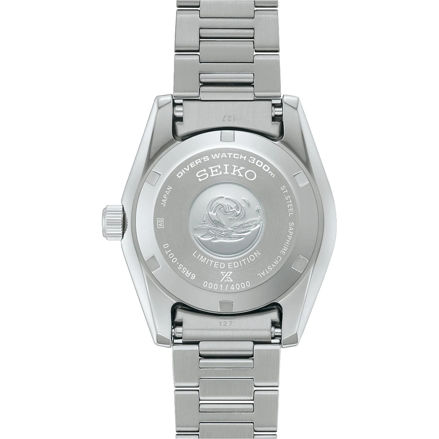 W sercu zegarka pracuje manufakturowy mechanizm automatyczny Seiko 6R55 z 72-godzinną rezerwą chodu, oferujący stabilność i pewność działania w każdych warunkach. Wodoszczelność do 300 metrów, zakręcany dekiel i koronka oraz odporność magnetyczna 4800 A/m czynią ten model narzędziem gotowym na profesjonalne wyprawy nurkowe. Każdy egzemplarz posiada indywidualny numer limitacji i grawer Save the Ocean, będący symbolem wspólnej misji ochrony mórz.