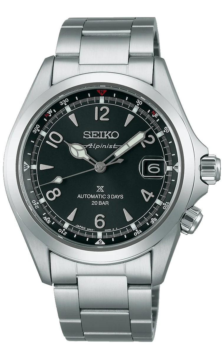 Seiko Prospex Alpinist SPB505J1 – automatyczny zegarek z czarną tarczą, mechanizmem 6R55 i kompasem. 72 h rezerwy chodu, szkło szafirowe, 200 m wodoszczelności.