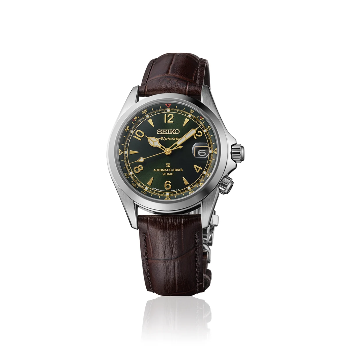 Zegarek zestawiono z brązowym paskiem wykonanym z naturalnej skóry o fakturze aligatora, zakończonym zapięciem motylkowym na przyciski. To połączenie nadaje mu elegancji i komfortu noszenia, podkreślając jego przygodowy, a zarazem klasyczny styl. Seiko Prospex Alpinist SPB507J1 to wybór dla mężczyzn, którzy cenią tradycję marki, piękno detali i mechanikę stworzoną, by przetrwać lata – zegarek o duszy odkrywcy i sercu precyzyjnego automatu.