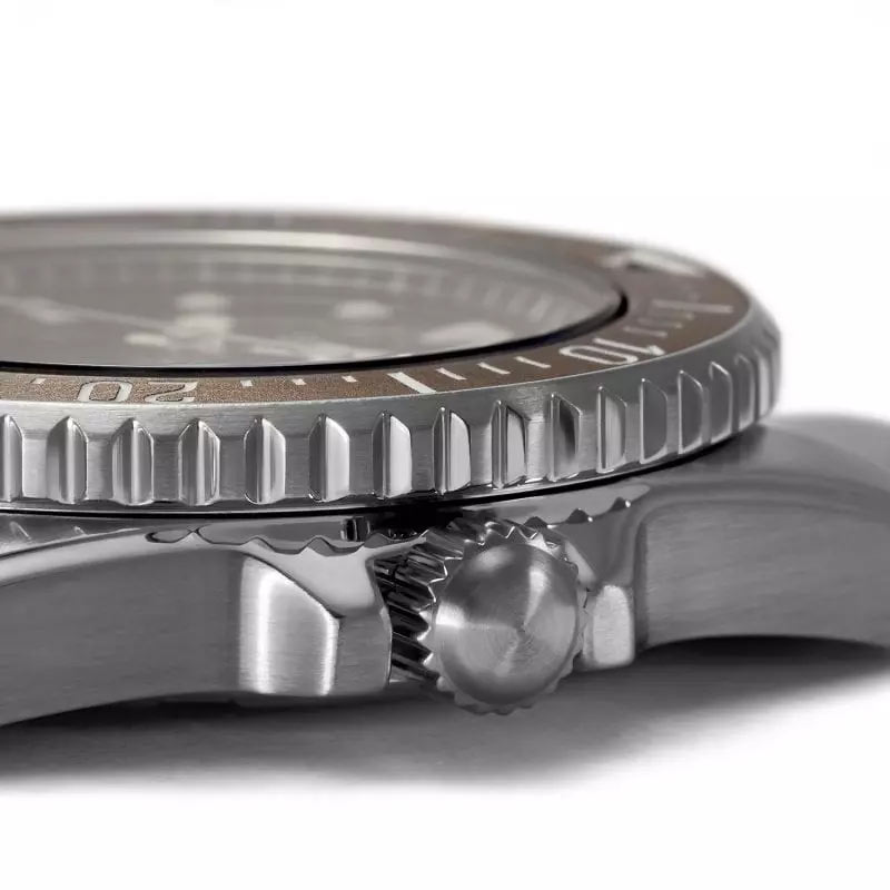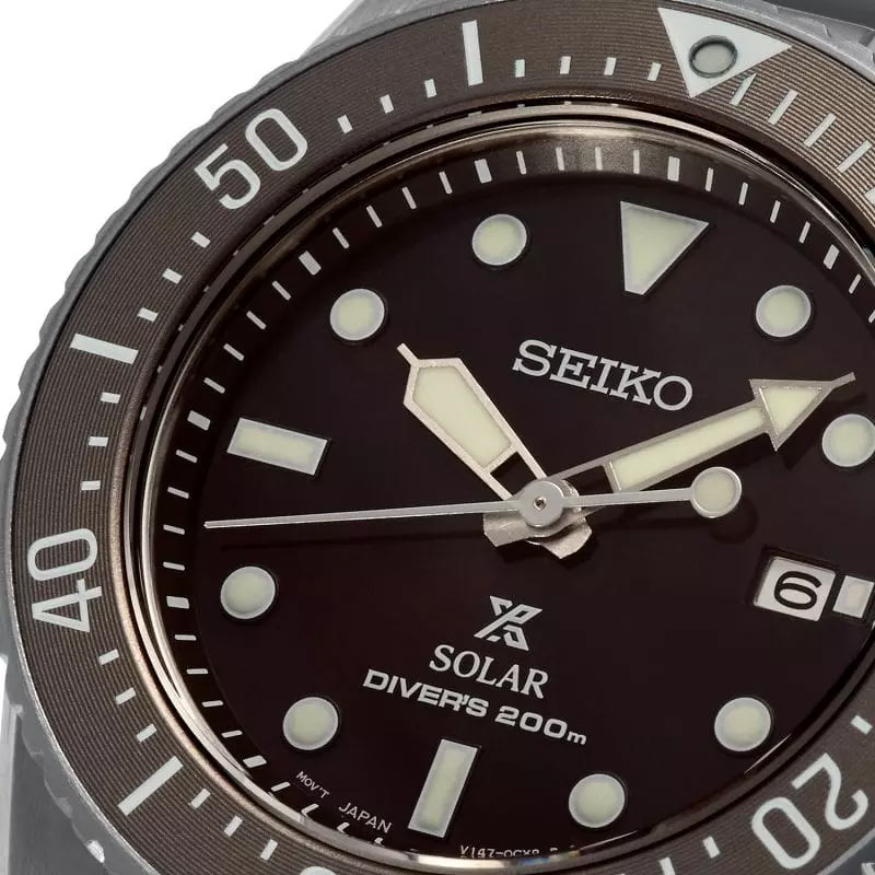 Kompaktowy zegarek męski do nurkowania Seiko Prospex Compact Solar Scuba Diver SNE571P1. Model wyposażony w mechanizm solarny kaliber V147 zasilany każdym rodzajem światła, a do tego o każdym natężeniu. Posiada funkcję ostrzegania o niskim poziomie naładowania baterii oraz zapobiegającą przeładowaniu. Nurkowy zegarek męski na bransolecie Seiko Prospex Compact Solar Scuba Diver cechuje wodoszczelność na poziomie 200 metrów. Dzięki niej użytkownik może korzystać ze swojego czasomierza nawet na tych głębokościach, na których niezbędny już jest akwalung. Seiko SNE571P1 to niewielkich rozmiarów (38.50 × 11.00) sportowy zegarek z czarną tarczą i srebrną obudową ze stali nierdzewnej. Jego tarczę z datownikiem zabezpiecza wysoce odporne na zarysowanie i krystalicznie przejrzyste szkło szafirowe. Za sprawą ponadczasowej kolorystyki oraz wysokiej czytelności zapewnianej przez wyraźne i świecące w ciemności znaczniki, wskazówki, to idealny zegarek sportowy równie na co dzień, jak i na zanurzanie się pod wodę.