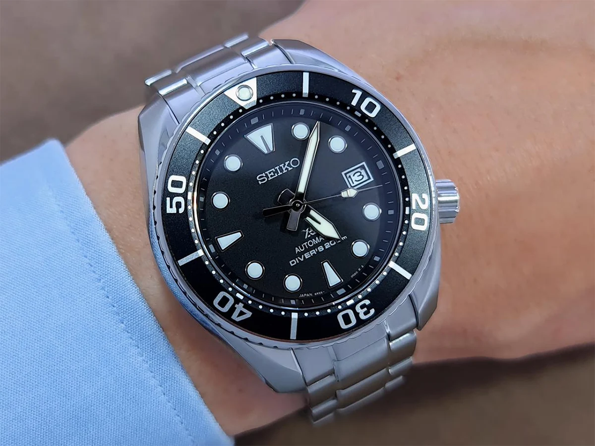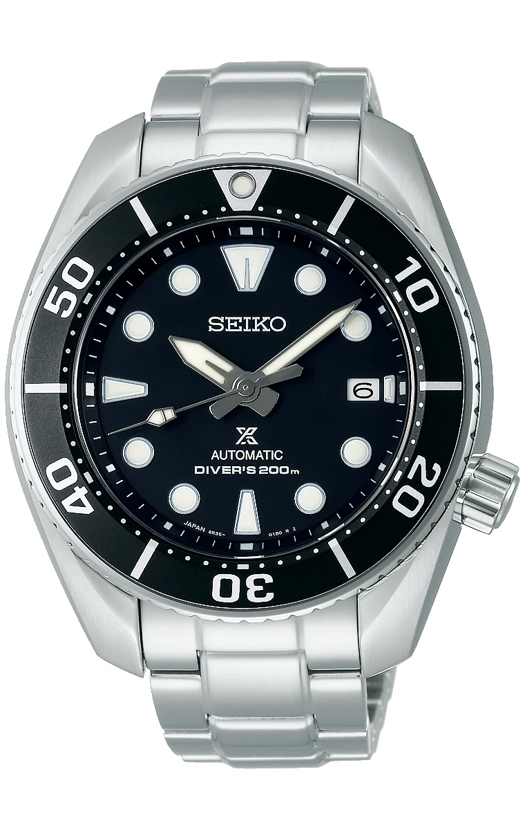 Seiko Sumo SPB101J1 to męski zegarek nurkowy o wodoszczelności 200 m. Czarna tarcza, stalowa koperta i mechanizm automatyczny czynią go idealnym zegarkiem do pływania i codziennego użytku.