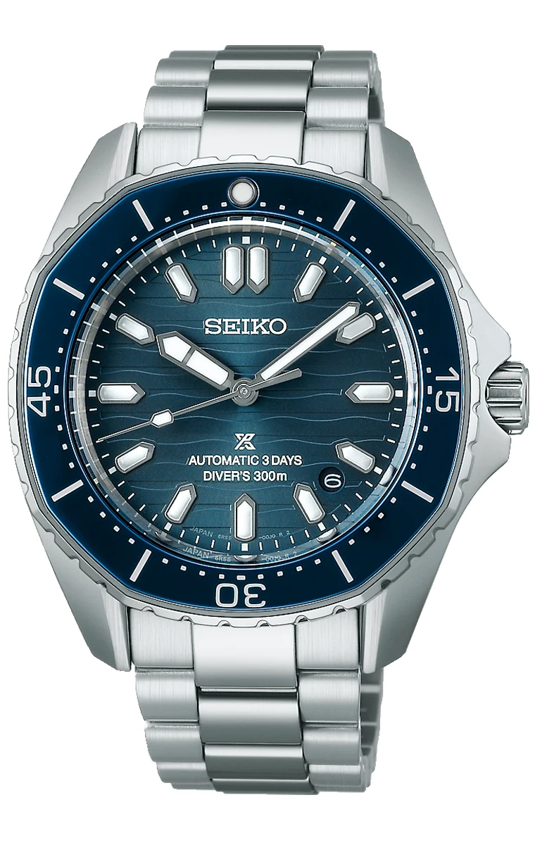 Barwa i wzór tarczy zegarka Seiko Automatic SPB483J1 inspirowany jest kolorem oceanu, przywodząc na myśl spokojne fale morskie. Indeksy i wskazówki pokryto powłoką luminescencyjną LumiBrite, która zapewnia doskonałą czytelność w ciemności. Wskazania czasu uzupełnia dyskretne okienko datownika przy godzinie czwartej, a całość chroni szafirowe szkło z powłoką antyrefleksyjną. Napędzany mechanizmem automatycznym Seiko z rezerwą chodu do 72 godzin, model SPB483J1 gwarantuje precyzję i niezawodność w każdych warunkach.