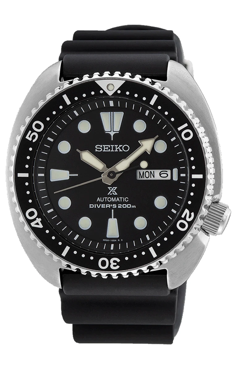 Koperta o charakterystycznym, zaokrąglonym kształcie Turtle została wykonana ze stali nierdzewnej i ma średnicę 45 mm. Zakręcana koronka oraz dekiel gwarantują pełną szczelność, a jednokierunkowy obrotowy bezel w kolorze czarnym pozwala na precyzyjne odmierzanie czasu zanurzenia. Zegarek zestawiono z elastycznym, czarnym paskiem gumowym odpornym na sól morską, temperaturę i działanie promieni UV — idealnym dla nurków. To solidny zegarek automatyczny męski, który łączy trwałość, komfort i minimalistyczny wygląd.