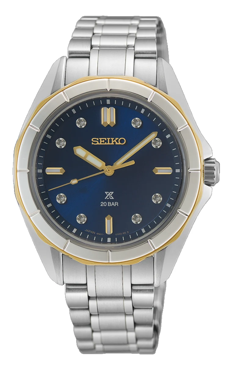 Seiko Prospex Sea Ladies SUR620J1 damski zegarek z granatową tarczą o szlifie słonecznym, ośmioma diamentami i wodoszczelnością 20 bar. Styl, precyzja i elegancja.