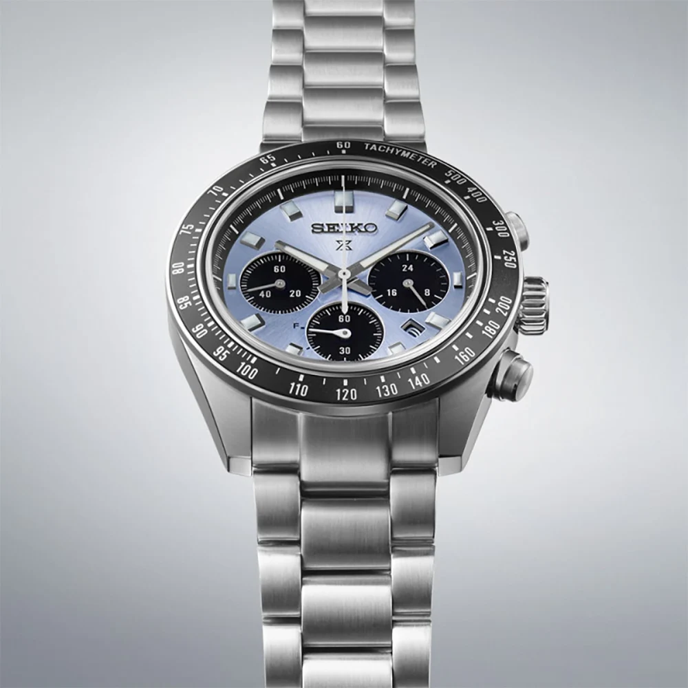 Seiko Prospex Speedtimer SSC935P1 to sportowy chronograf solarny z niebieską tarczą, tachymetrem i mechanizmem Seiko V192. Styl, precyzja i nowoczesna technologia w jednym.