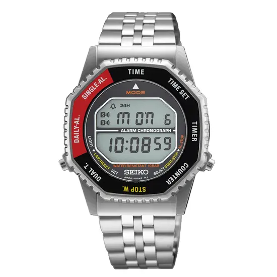 Seiko Rotocall 1980s Reborn Digital Quartz SMGG19P1 to współczesna reedycja kultowego modelu z 1982 roku, w której klasyczna forma spotyka się z nowoczesnym wykonaniem. Tym razem Seiko nadaje legendzie bardziej dynamiczny, techniczny wygląd – z czerwonymi akcentami i sportowym kontrastem na pierścieniu. To zegarek, który łączy ducha retro z nowoczesną precyzją, zachowując oryginalny charakter cyfrowych ikon sprzed czterech dekad.