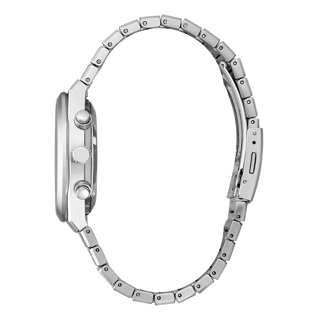 Kompaktowa obudowa zegarka została wykonana ze stali szlachetnej, a jej średnica 40 mm gwarantuje wygodę noszenia zarówno na szczuplejszym, jak i bardziej masywnym nadgarstku. Model ten osadzony jest na pełnej, stalowej bransolecie o solidnym splocie i klasycznym zapięciu, co podnosi jego trwałość i nadaje mu bardziej wyrazisty charakter. Szkło mineralne typu Hardlex zabezpiecza cyferblat przed uszkodzeniami, a wodoszczelność do 100 metrów pozwala bez obaw używać zegarka również podczas kontaktu z wodą – na przykład na basenie lub w trakcie intensywnego deszczu.
