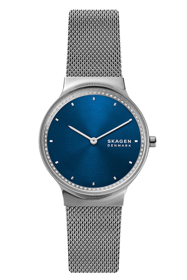 Klasyczny modowy zegarek duńskiej marki Skagen z damskiej kolekcji Freja. SKW3028 to czasomierz wykonany ze stali szlachetnej nierdzewnej w kolorze srebrnym. Koperta ozdobiona cyrkoniami okrągła o szerokości 34 mm połączona została z delikatną bransoletką stalową typu MESH. Czasomierz posiada piękną analogową niebieską tarczę z prostymi wskazówkami i punktowymi indeksami, która przykryta jest szkiełkiem mineralnym. Mechanizm kwarcowy to serce zegarka, które zasilane jest małą baterią. Wodoszczelność do 30 metrów pozwala na bezpieczną kąpiel z czasomierzem na nadgarstku. Skagen Freja SKW3028 idealnie wpasuje się w aktualne trendy. Zegarek będzie pasował kobietom, które lubią minimalizm i proste dodatki do outfitu.