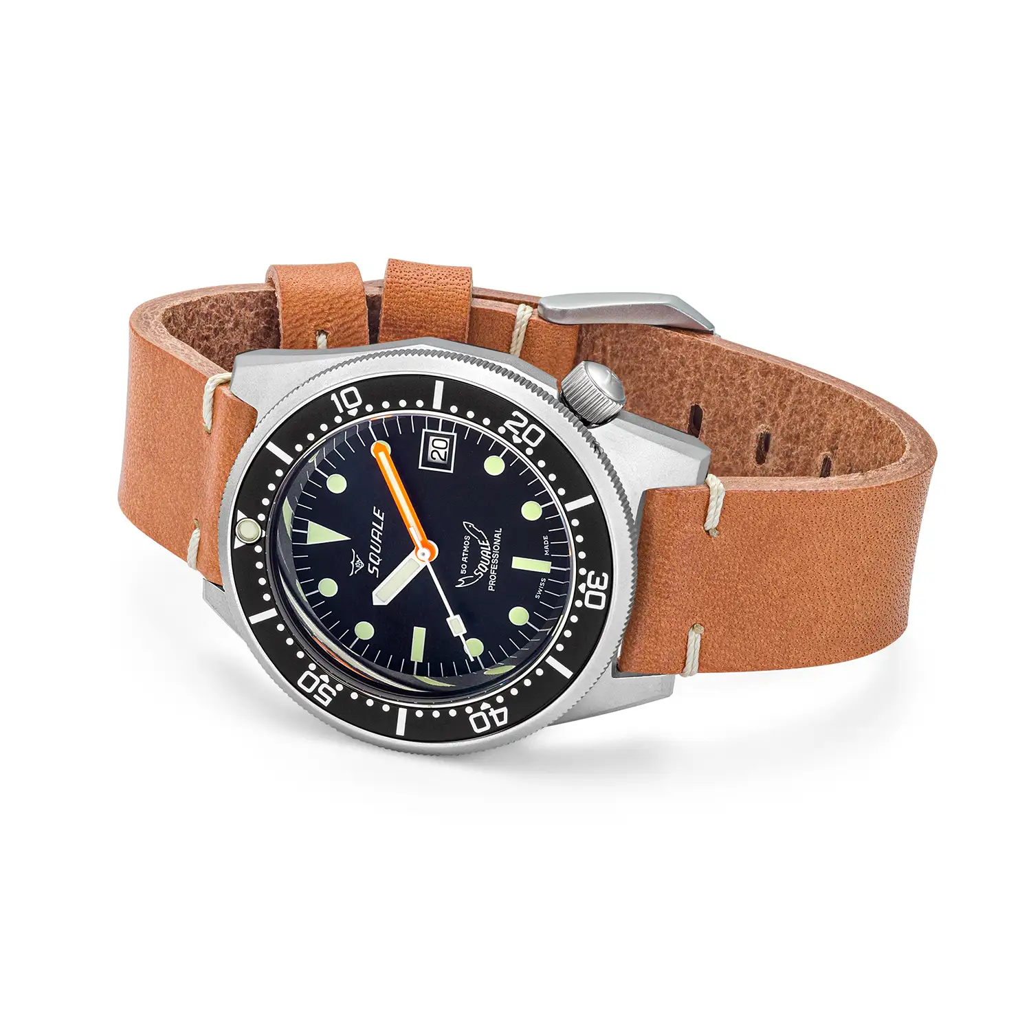 Jasnobrązowy skórzany pasek typu vintage nie tylko świetnie kontrastuje z ciemną kopertą, ale także podkreśla stylowy, nieco retro charakter tego divera. To propozycja dla tych, którzy szukają zegarka o silnym charakterze i wysokiej funkcjonalności – bez kompromisów.