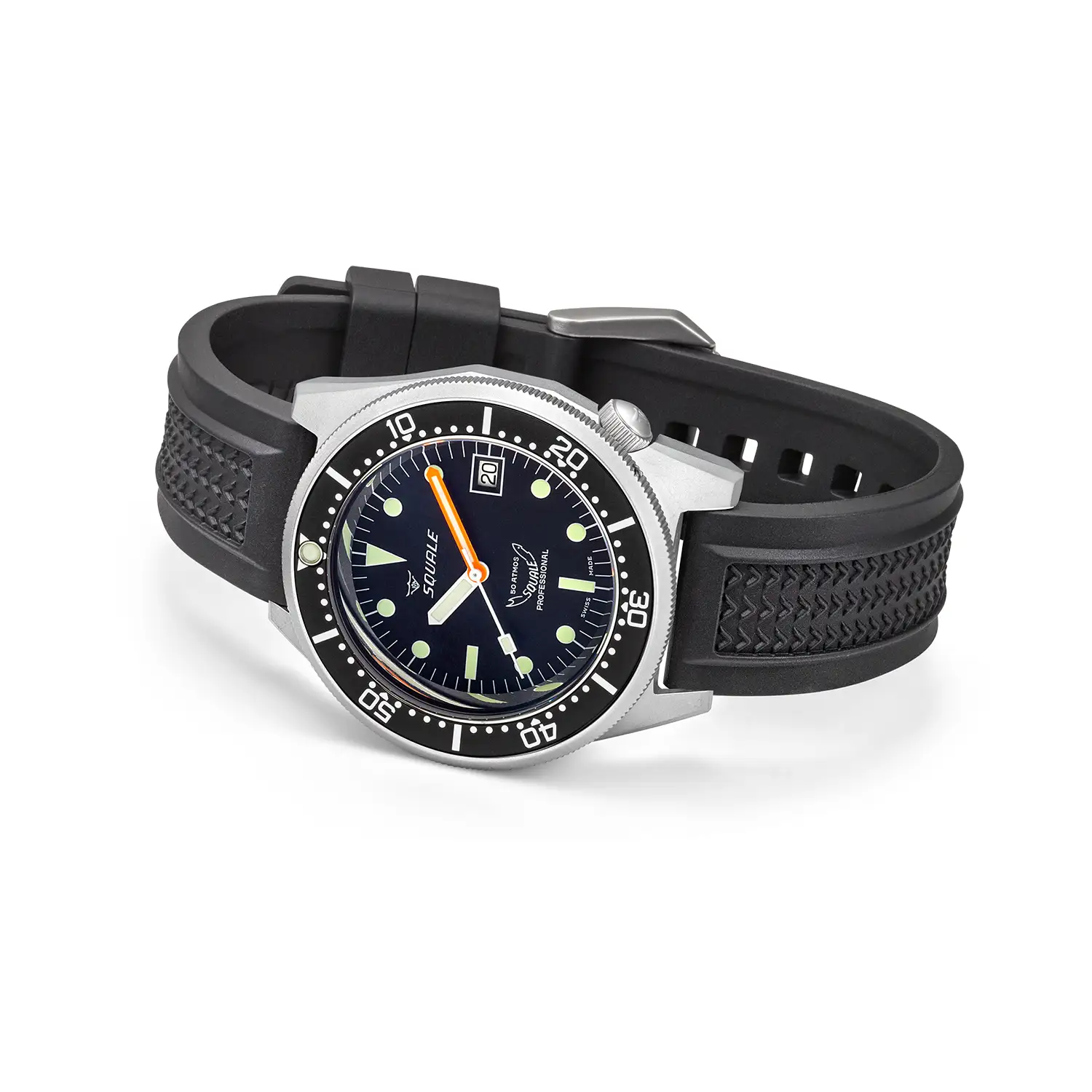 Squale 1521 Black Blasted 1521BKBL.VO to bezkompromisowy zegarek nurkowy, zaprojektowany z myślą o funkcjonalności i odporności w warunkach ekstremalnych. Wersja ta wyróżnia się czarnym, naturalnym paskiem gumowym z charakterystycznym wzorem fali pośrodku – subtelny detal, który podkreśla związek tego modelu ze środowiskiem wodnym, a jednocześnie zapewnia wyjątkowy komfort noszenia.