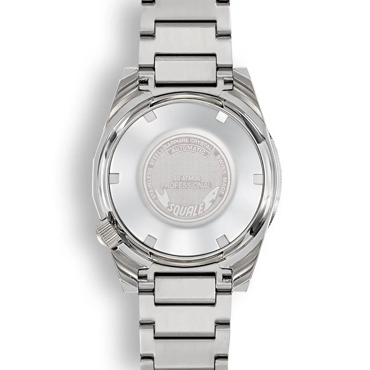 Squale 1521 Full Luminous Militaire na bransolecie to doskonały wybór dla tych, którzy potrzebują zegarka ekstremalnie czytelnego, solidnego i bezkompromisowego — zarówno pod wodą, jak i na co dzień.