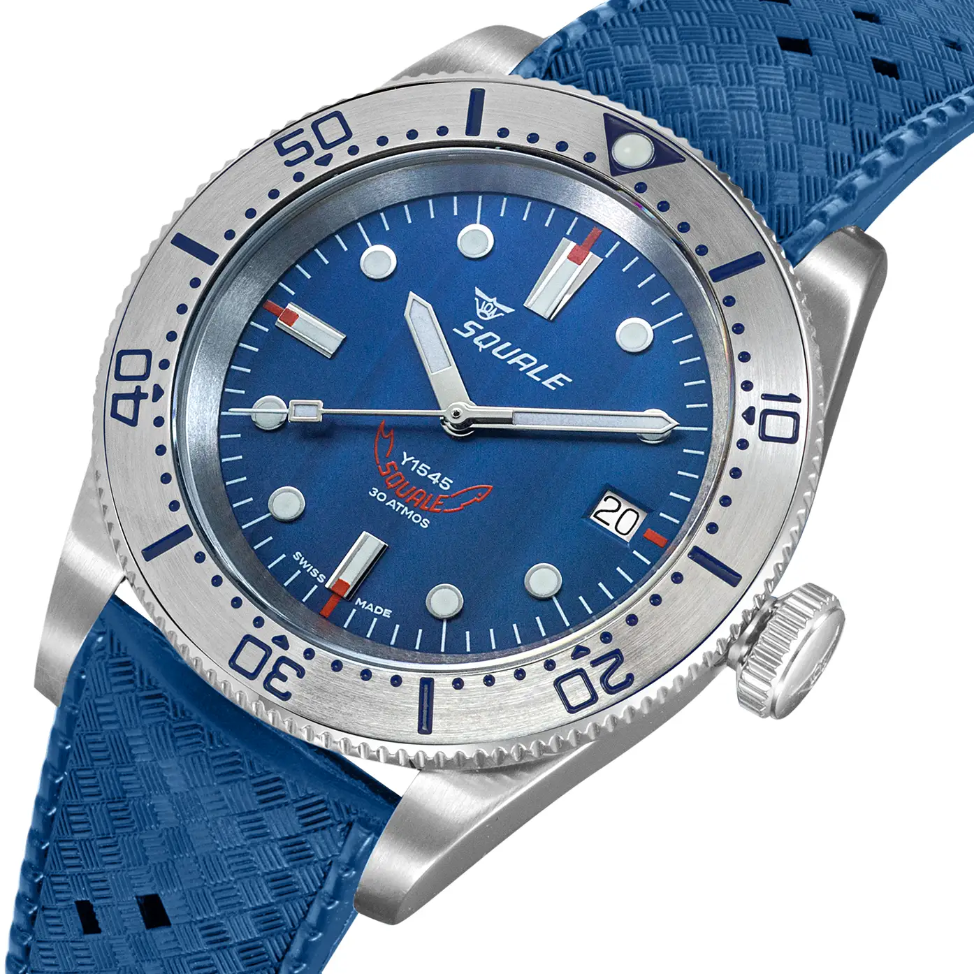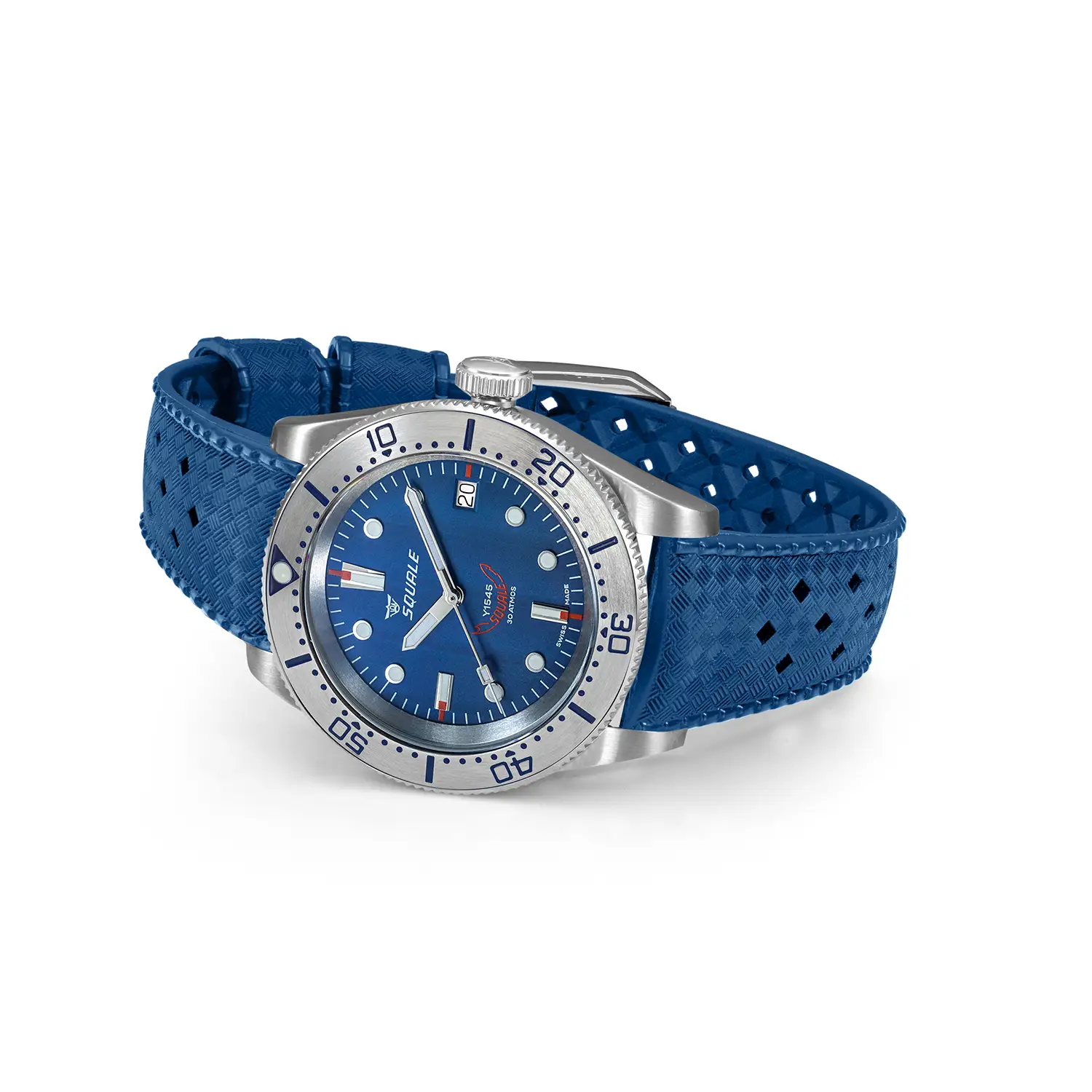 Squale 1545 Steel Blue na pasku Tropic to wytrzymały i stylowy towarzysz każdej wodnej przygody, który równie dobrze odnajdzie się w codziennym użytkowaniu. To propozycja dla tych, którzy szukają profesjonalnego zegarka z charakterem i historią.