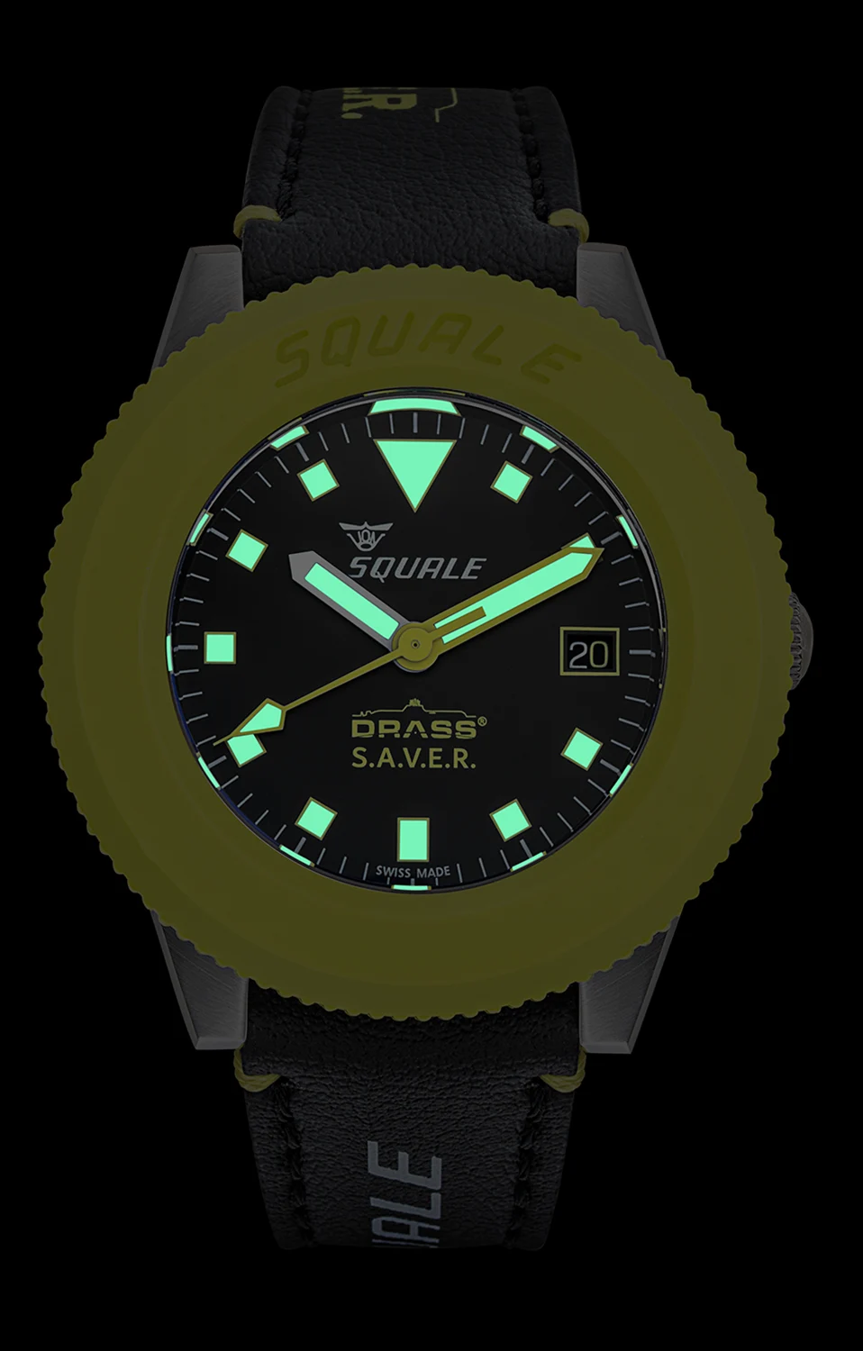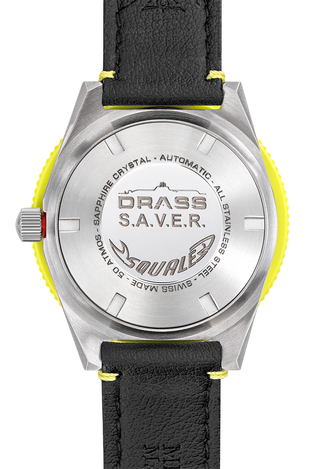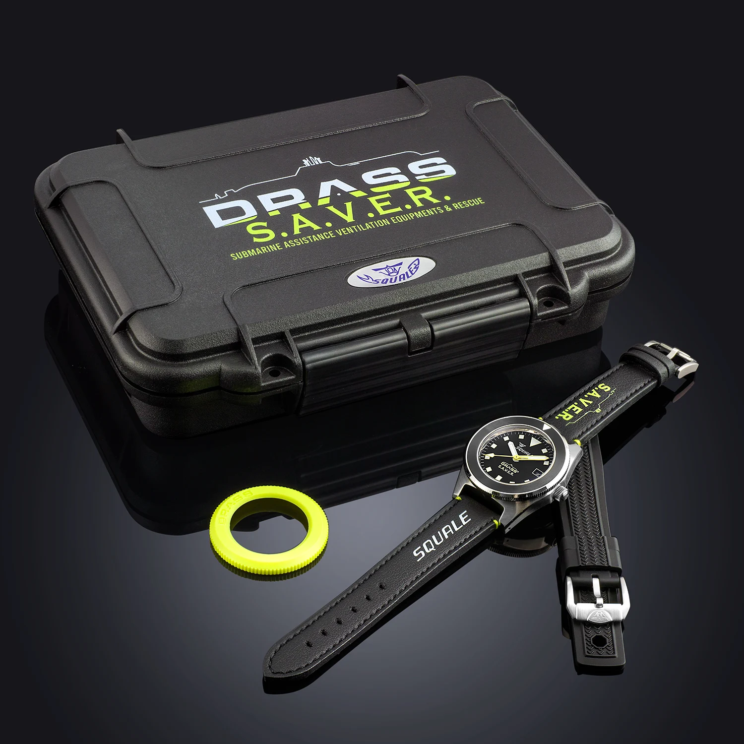 Squale Drass S.A.V.E.R. VONDSSSAVS to profesjonalny zegarek nurkowy stworzony we współpracy z włoską firmą Drass Underwater Technologies – światowym liderem w dziedzinie technologii podwodnych. Ten model powstał jako narzędzie dla operatorów łodzi podwodnych i specjalistów zajmujących się systemami ratownictwa morskiego, inspirowany nowoczesnym projektem SAVER (Submarine Advanced Vehicle for Emergency Rescue) używanym przez włoską marynarkę wojenną.