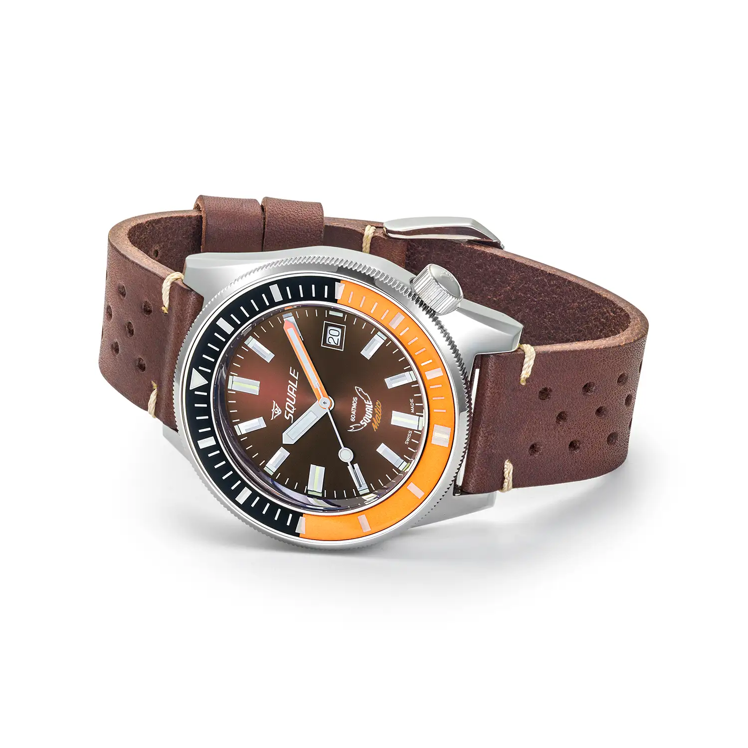 Zegarek Squale Matic MATICXSD.PTS to profesjonalny diver przeznaczony dla wymagających nurków oraz pasjonatów wyjątkowego designu. Jego czekoladowo-brązowa tarcza sunray – cechująca się subtelnym efektem rozchodzących się promieni świetlnych, które zmieniają wygląd tarczy zależnie od kąta padania światła – współgra ze stalowym, dwukolorowym pierścieniem nurkowym w odcieniach czerni i pomarańczy. Taki bezel nie tylko podkreśla sportowy charakter zegarka, ale przede wszystkim ułatwia kontrolowanie czasu zanurzenia. Pomarańczowy segment obejmujący pierwsze 15 minut nurkowania pozwala błyskawicznie odczytać najważniejsze etapy dekompresji. Zegarek charakteryzuje imponująca wodoszczelność do 600 m (60 ATM), potwierdzając jego profesjonalne przeznaczenie do głębokich eksploracji.