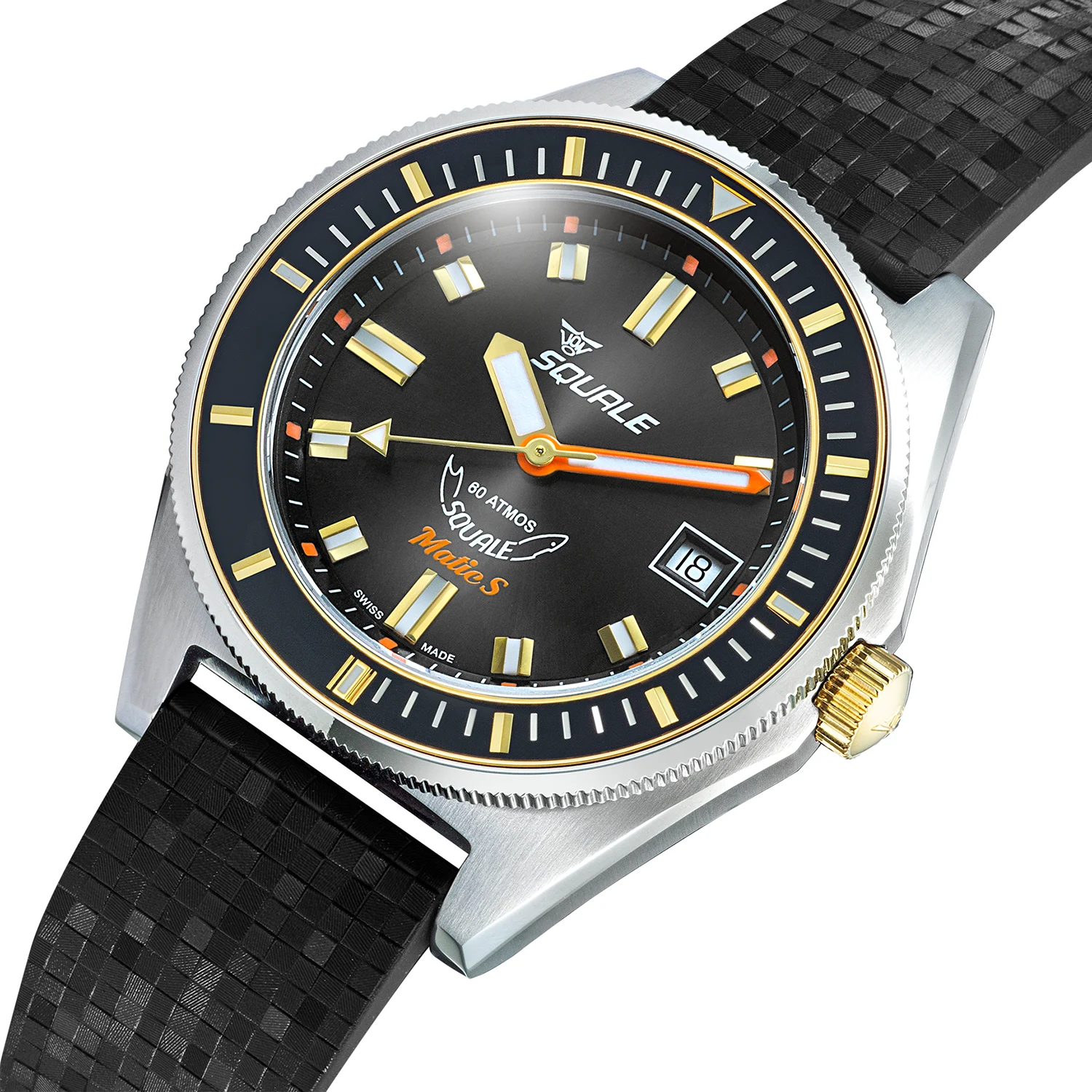 Squale Matic S Two-Tone Mosaic Rubber to współczesny diver w luksusowej interpretacji. Łączy szwajcarską precyzję, klasyczne wzornictwo i nowoczesne materiały – stworzony dla mężczyzn, którzy oczekują najwyższej jakości w każdym detalu.