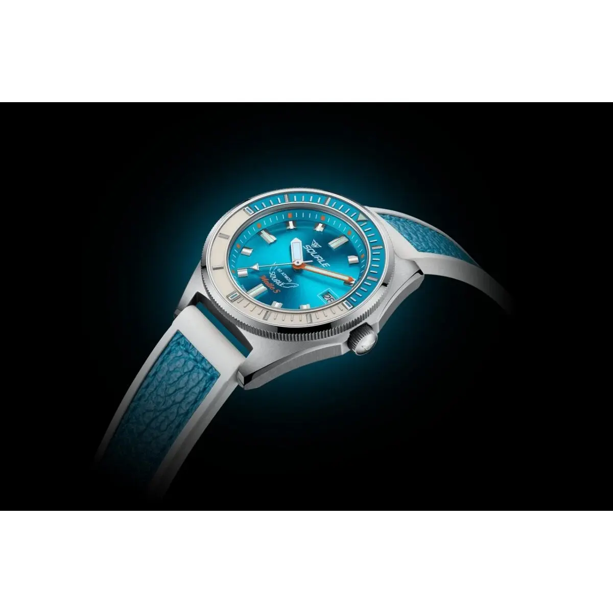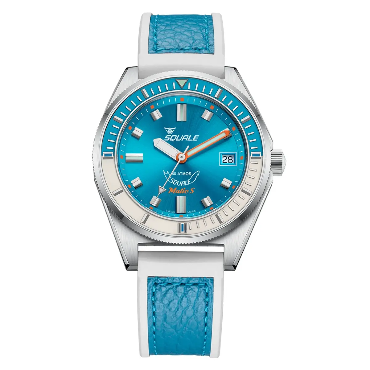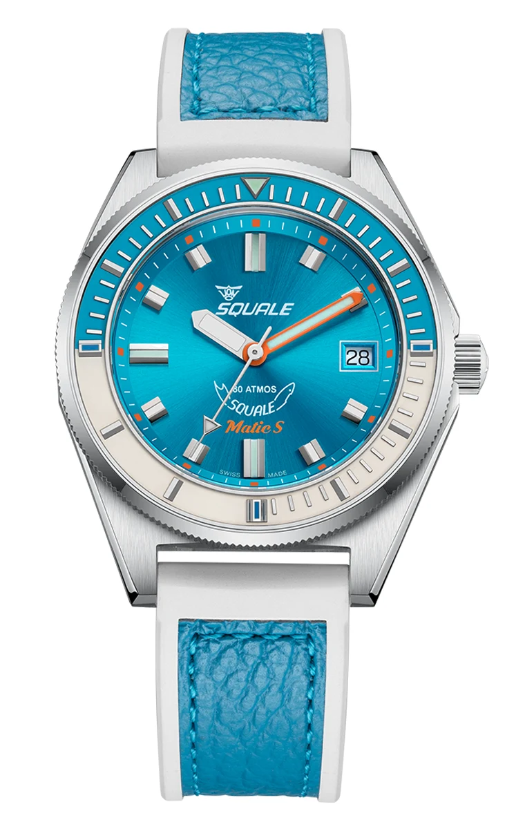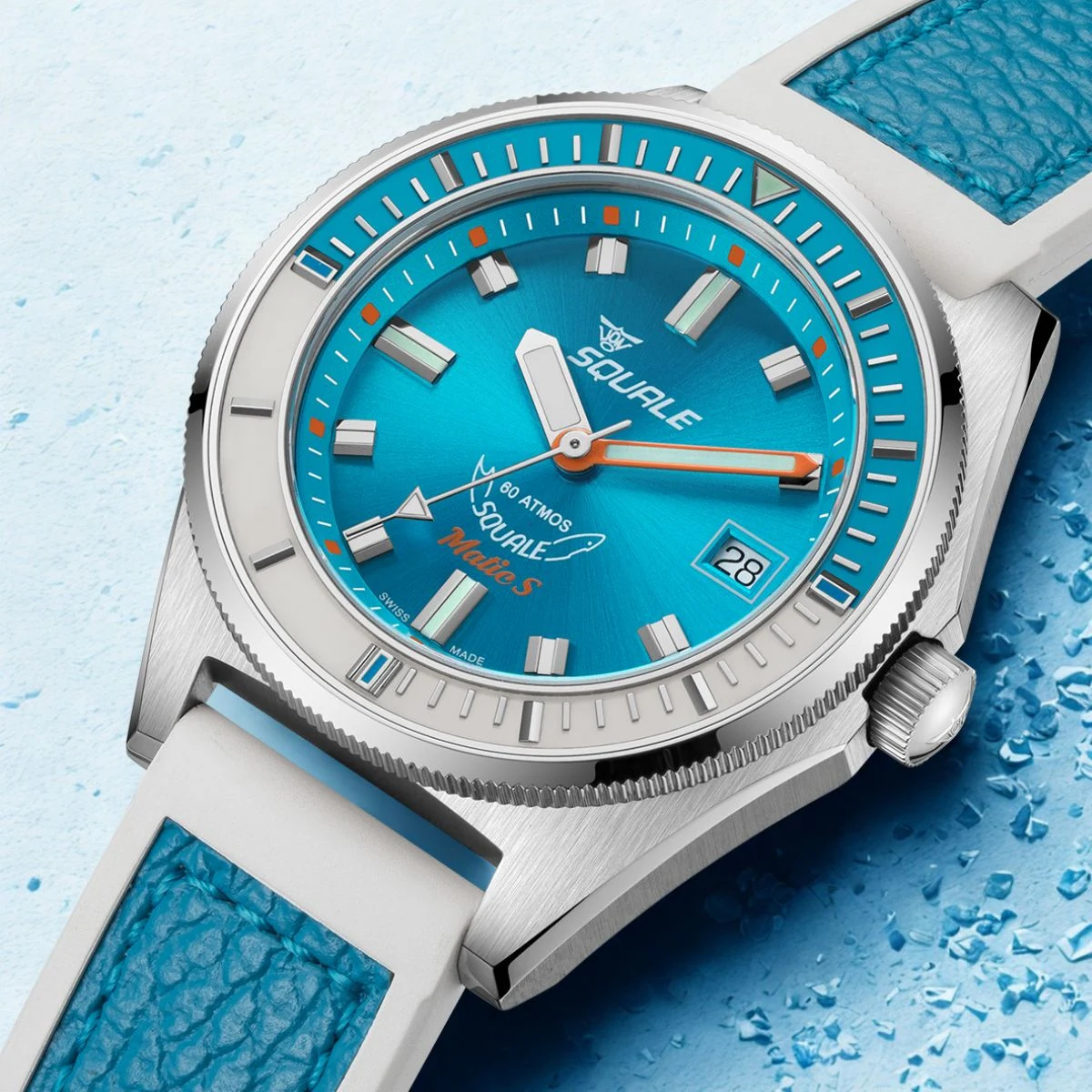 Squale Matic S Light Blue HydroLeather MATICLBWLB.RLWLB to męski zegarek nurkowy łączący klasyczne DNA marki z nowoczesną ergonomią i elegancką kolorystyką. Koperta o średnicy 39,5 mm i wysokości 12,6 mm nadaje mu solidną, ale wciąż komfortową formę, idealną na co dzień i podczas nurkowania. Zawodowa wodoszczelność 600 m potwierdza jego profesjonalny charakter.