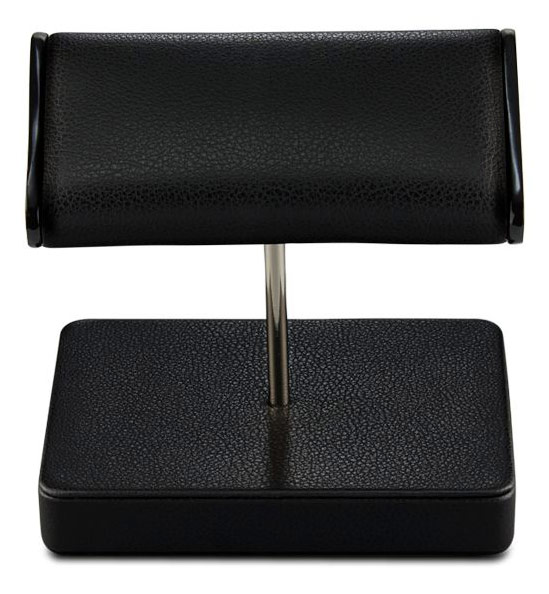 Stojak na 2 zegarki WOLF Roadster 487202. Brytyjska marka WOLF prezentuje nowoczesny, emanujący elegancją stojak do prezentacji dwóch zegarków. WOLF Roadster to ręcznie wykonany stabilny i bezpieczny stojak z tacką obitą najwyżej jakości skórą wegańską. Tacka posiada wyściełaną miękką poduszkę, na której można położyć bez obawy o zarysowanie dwa zegarki. Podstawa stojaka zapewni stabilność, dzięki czemu czasomierze będą eksponowane w bezpieczny sposób. WOLF 487202 to możliwość dumnego eksponowania naszych wyjątkowych zegarków na przykład na biurku, komodzie czy stoliku.