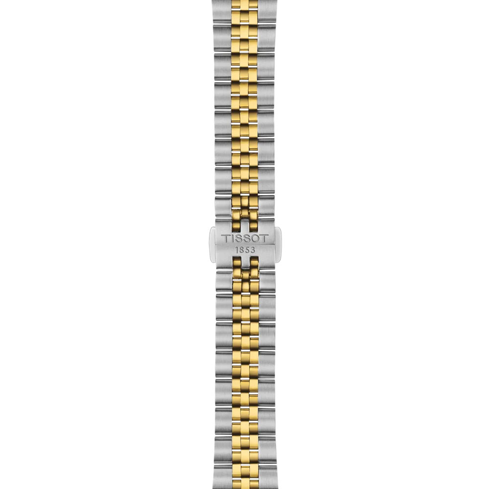 Szwajcarski zegarek Tissot Quartz T1562102203100 to harmonijne połączenie klasyki z praktycznymi rozwiązaniami, zamknięte w smukłej kopercie o średnicy 34 mm, doskonale współgrającej z elegancką bransoletą bicolor. Karbowany pozłacany bezel, będący wyrazem zegarmistrzowskiej tradycji, urzeka precyzją wykonania i subtelnym wykończeniem. Model wyposażono w system szybkiej wymiany bransolety, co czyni go niezwykle wszechstronnym i łatwym w dostosowaniu do różnych okazji. Antyrefleksyjne szkło szafirowe oraz klasa szczelności do 100 metrów gwarantują trwałość i niezawodność, zarówno na co dzień, jak i podczas aktywności w wodzie. Prezentowany model napędza precyzyjny mechanizm ETA z funkcją End Of Life, która wskazuje konieczność wymiany baterii przez charakterystyczne przesuwanie wskazówki sekundowej co 4 sekundy.