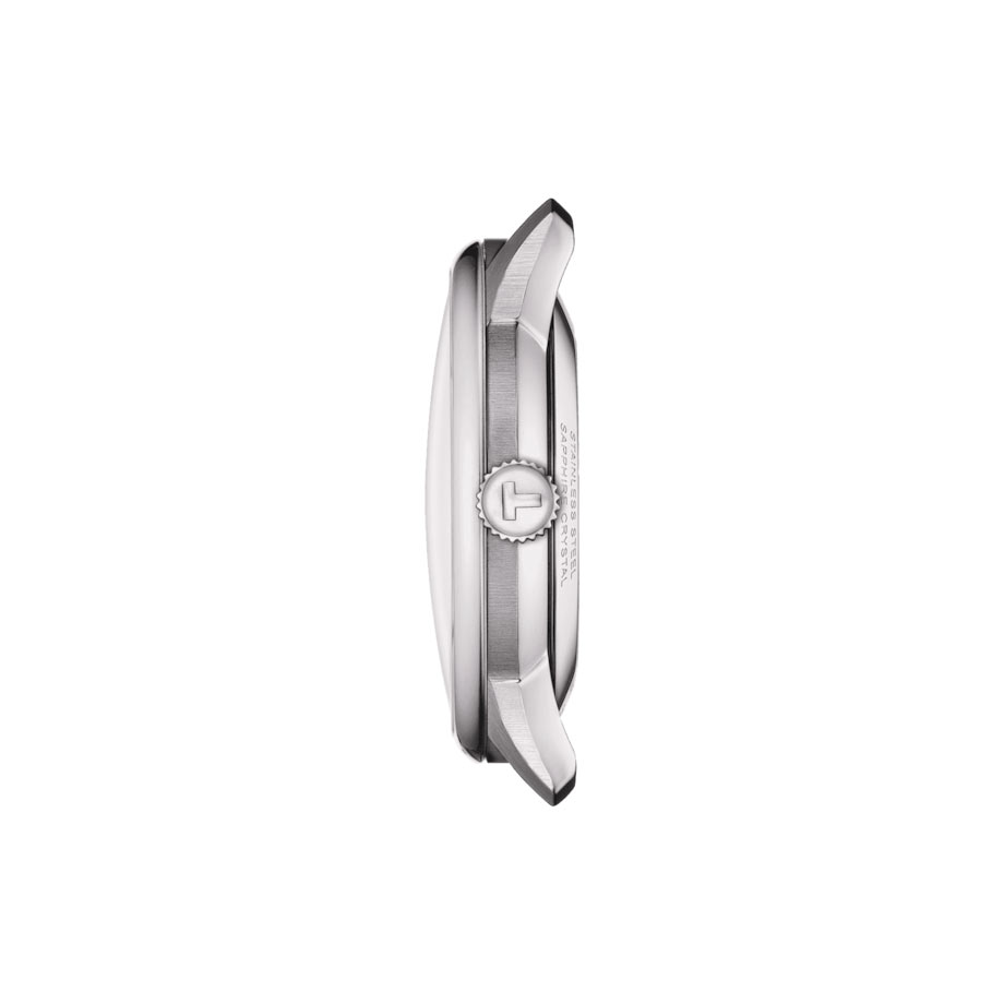 Od frontu zauważalna jest wąska ramka obudowy. Najwyższej jakości szkło szafirowe osłania niebieski pierścień, na którym znalazły się smukłe indeksy. Środek został odsłonięty, co w niezwykły sposób odkrywa tajemniczą budowę mechanizmu szwajcarskiego Powermatic 80. Automatyczny werk wyposażony jest w krzemową sprężynę włosową Nivachron™, która chroni cały układ przed polem magnetycznym i wyższymi temperaturami. Ten precyzyjny mechanizm oferuje imponującą rezerwę chodu do 80 godzin. Zegarek automatyczny Tissot na bransolecie wyróżnia się modną kolorystyką, która odnajdzie się w każdej garderobie. Model ten z dumną prezentować się będzie na każdym nadgarstku.