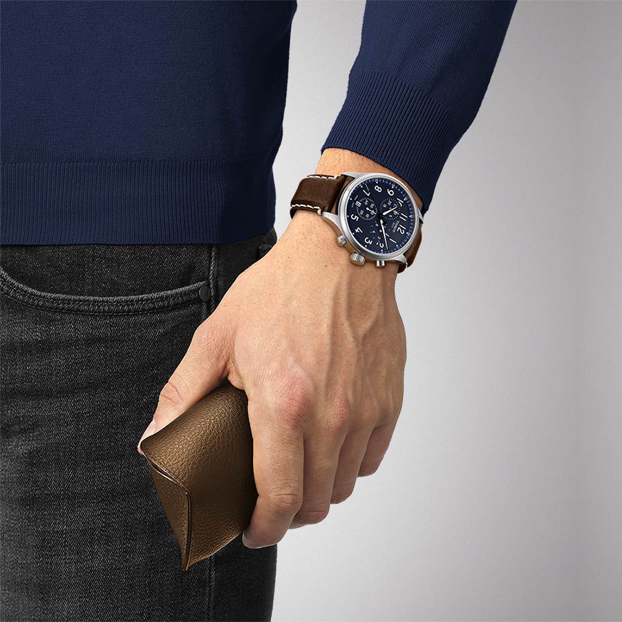 Tissot Chrono XL Vintage T116.617.16.042.00 to jeden z największych, męskich chronografów dla mężczyzn, tym razem z lekką nutą stylu retro. Elegancka i bardziej vintage wersja Chrono XL, ale jednocześnie z zachowaniem sportowego charakteru. Całkowicie matowa obudowa zamknięta szafirowym szkłem odpornym na zarysowania. Od spodu znajduje się dekiel z dużą ilością wolnego miejsca na umieszczenie grawerunku, co czyni ten zegarek idealną propozycją na prezent. Wyraźne indeksy arabskie i brązowy pasek skórzany to kolejny ukłon w stronę stylu retro. Duży rozmiar koperty, 45 mm średnicy i bardzo przystępna cena, doskonale wpisuje się w najnowsze trendy zegarkowe. Wskazówki i indeksy pokryte substancją luminescencyjną ułatwią odczyt godziny w całkowitych ciemnościach. Model polecany nie tylko na pierwszy zegarek, ale również jako ten do noszenia każdego dnia jako uzupełnienie kolekcji.