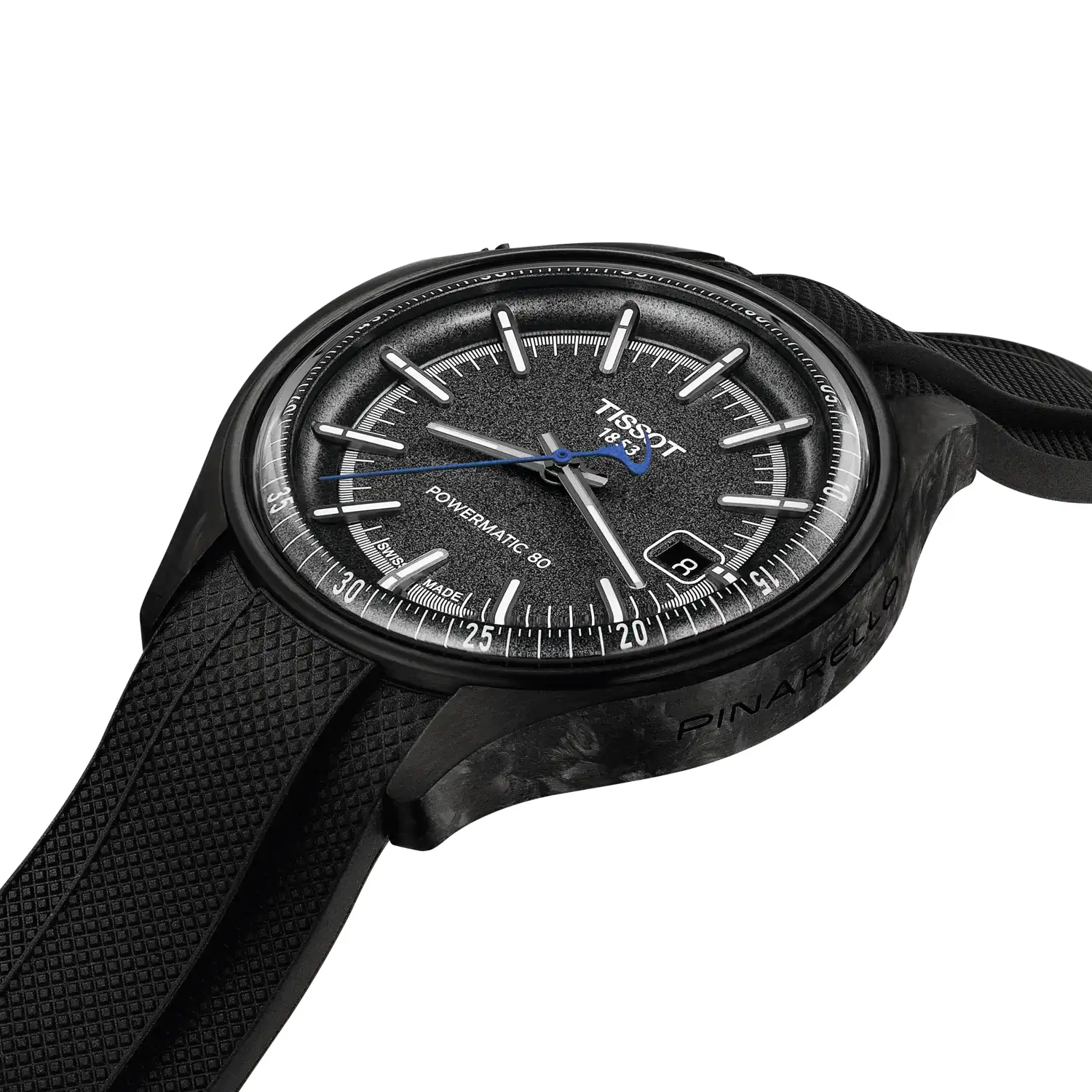 Tarcza w odcieniu szarości została zaprojektowana z wyraźną inspiracją asfaltem. Jej ziarnista struktura przywodzi na myśl nawierzchnię szosy widzianą z perspektywy kolarza, co nadaje całości autentycznego, sportowego wyrazu. Kontrastujące indeksy i wskazówki gwarantują wysoką czytelność, a centralna kompozycja zachowuje przejrzystość nawet przy szybkim spojrzeniu. Wewnątrz pracuje automatyczny mechanizm Powermatic 80 z certyfikatem chronometru COSC, oferujący rezerwę chodu do 80 godzin. Transparentny dekiel pozwala obserwować jego pracę, jednocześnie podkreślając techniczny charakter zegarka i precyzję wykonania.
