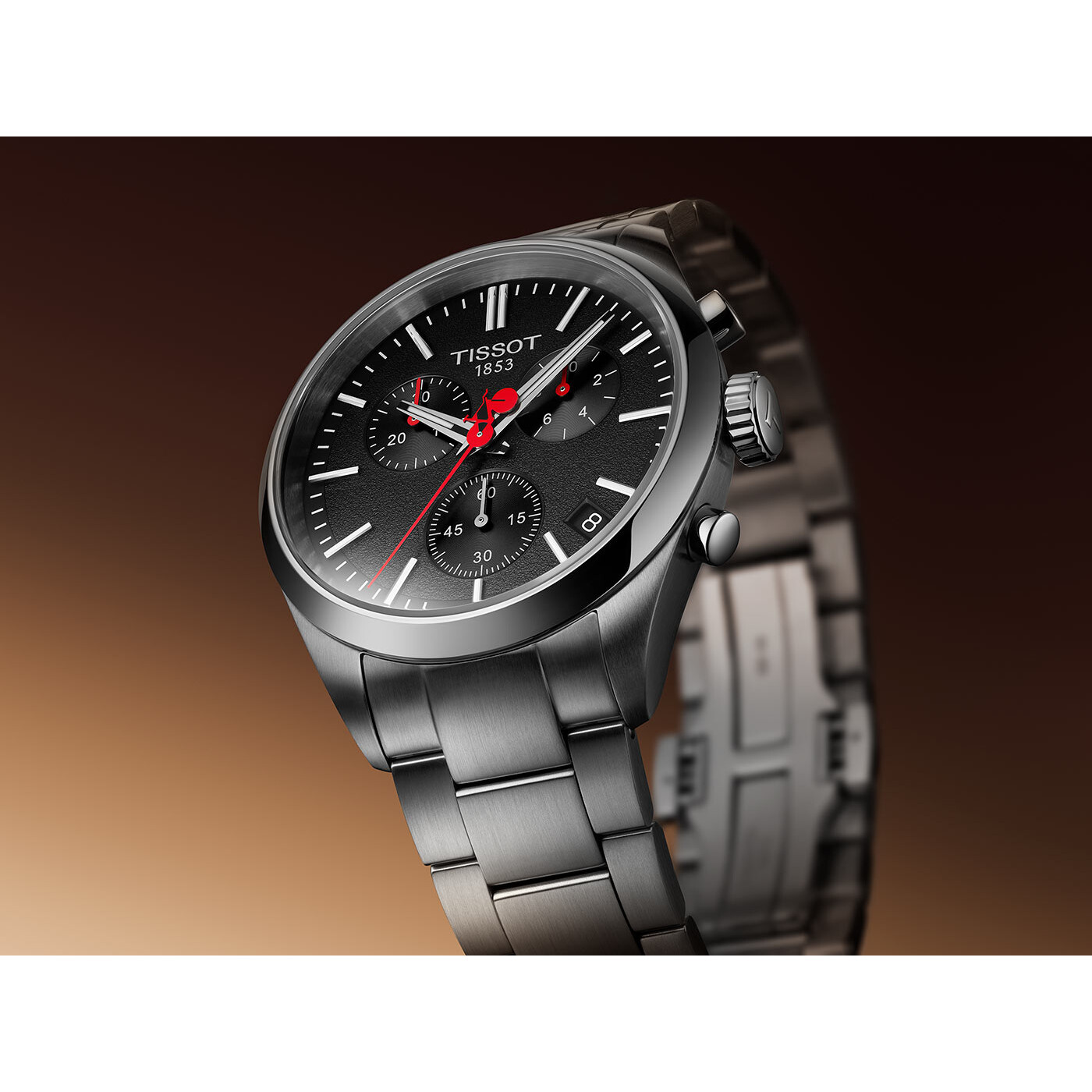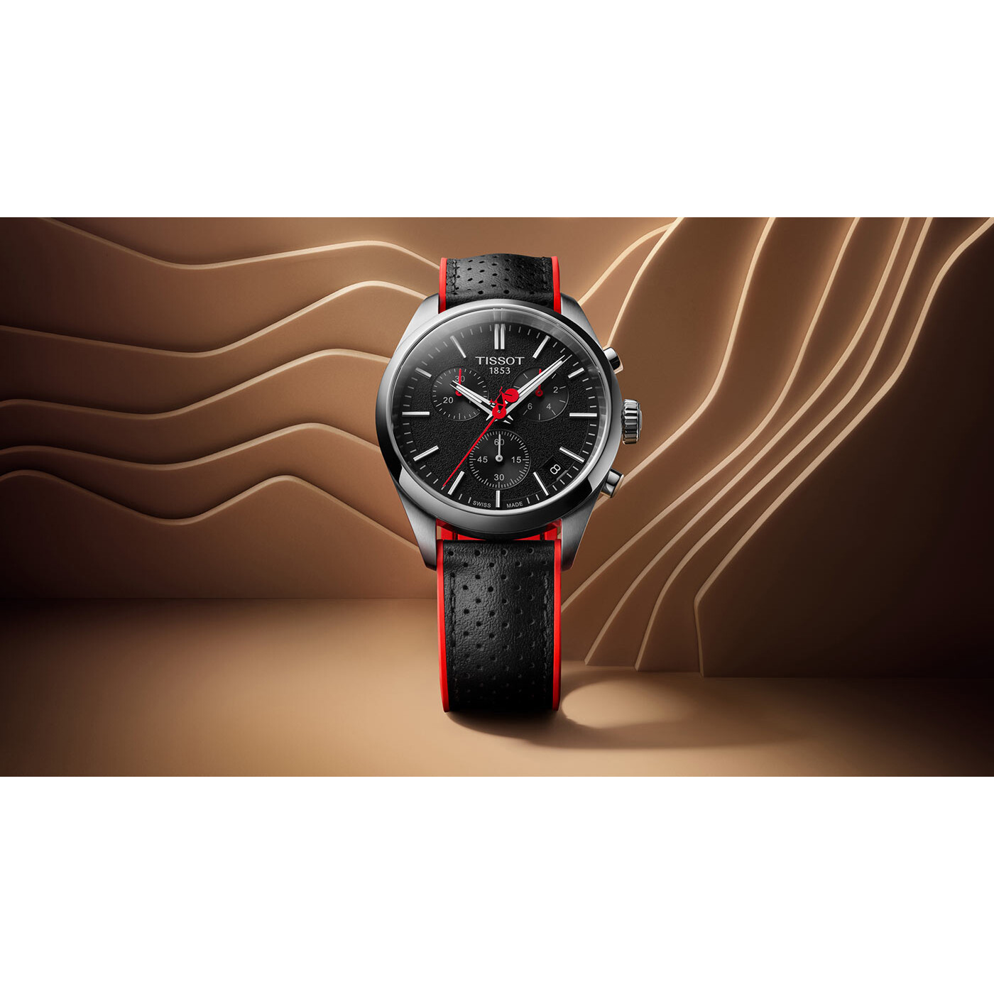 Wszechstronność modelu Tissot T150.417.11.051.01 podkreśla trzyrzędowa metalowa bransoleta z motylkowym zapięciem z przyciskami, zapewniająca komfort i bezpieczeństwo noszenia. Zegarek jest również oferowany w zestawie z drugim paskiem do łatwej zmiany bez narzędzi wykonanym z dwóch materiałów, który odzwierciedla atmosferę i barwy legendarnego wyścigu, przywołując emocje i pasję kolarskich zmagań na najwyższym poziomie.