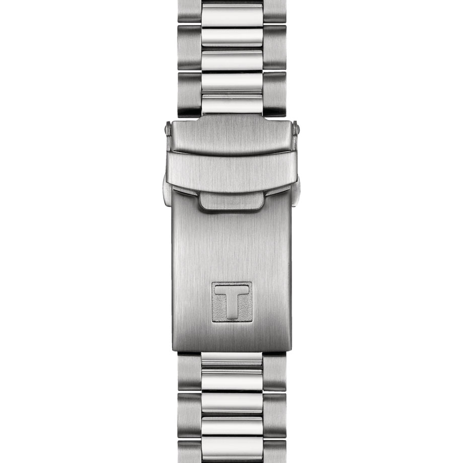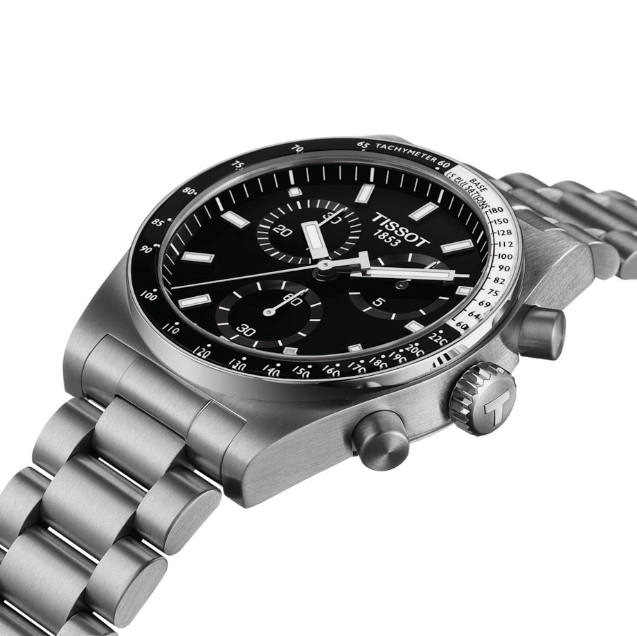 Jego solidny design obejmuje zwężaną 40-milimetrową kopertę ze stali szlachetnej, nadając mu dynamiczny i niepowtarzalny wygląd. Koperta w zestawieniu z solidną stalową bransoletą, tworzy eleganckie i nowoczesne połączenie. Zapięcie motylkowe na stalowej bransolecie zapewnia nie tylko bezpieczeństwo, ale także wygodę noszenia. Dwa przyciski po prawej stronie obudowy umożliwiają łatwą obsługę chronografu. Zakręcany dekiel na rewersie potwierdza wodoszczelność zegarka do głębokości 100 metrów. Zegarek Tissot Chronograph będzie idealnym towarzyszem także podczas pływania. Producent udekorował dekiel grawerem w postaci kierownicy auta rajdowego, oraz liści laurowych.