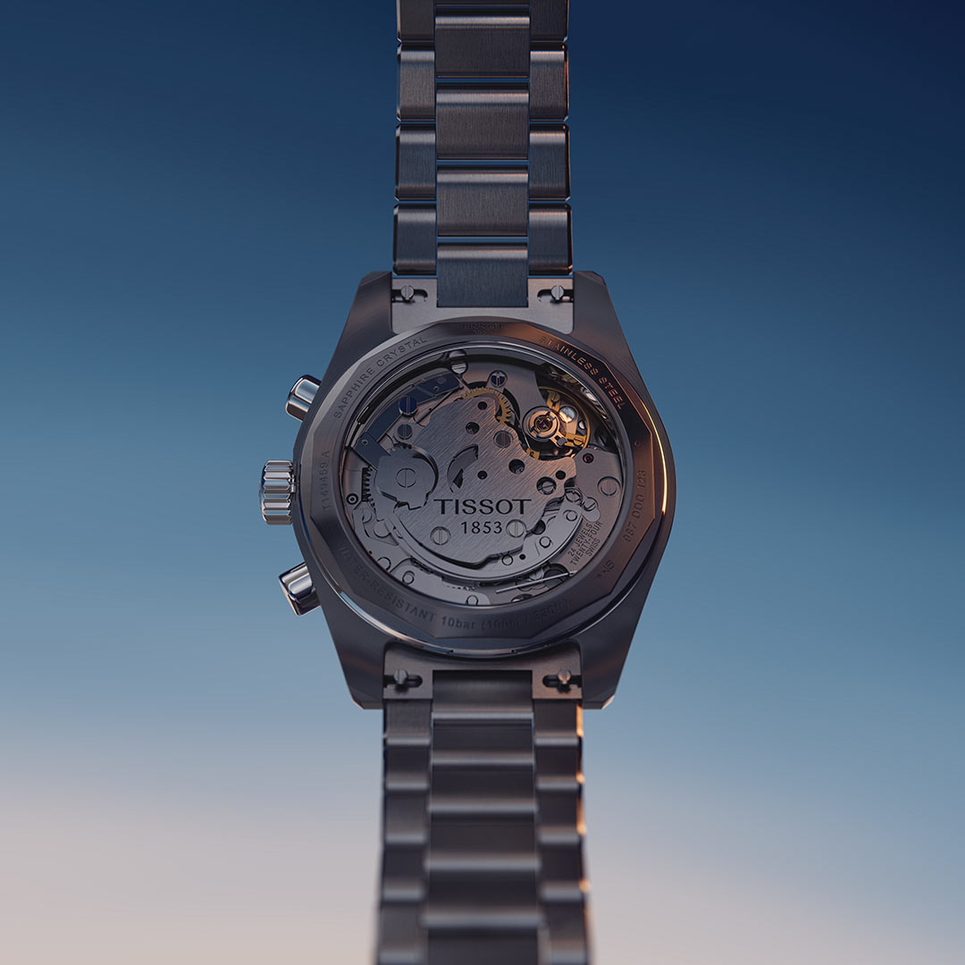 Od frontu zegarek mechaniczny Tissot zabezpieczony został odpornym na zarysowania szkłem szafirowym z powłoką antyrefleksyjną, która odbija światło. Szkło osłania bogatą funkcjonalnie tarczę. Super-LumiNova®, pokrywająca pierścień, indeksy i wskazówki zegarka, nie tylko zapewnia doskonałą widoczność w ciemności, ale również podkreśla praktyczność tego modelu. Na tarczy znajdują się dwie subtarcze chronografu, którym towarzyszy tarcza czasu w trybie 12/24h. Pod tarczą zainstalowany został kultowy mechanizm ręcznie nakręcony ETA Valjoux A05 wyposażony w sprężynę antymagnetyczną Nivachron™. Szwajcarski mechaniczny chronograf z 60-godzinną rezerwą chodu nie tylko podkreśla innowacyjność marki Tissot, ale także jest hołdem dla tradycji i rzemiosła.