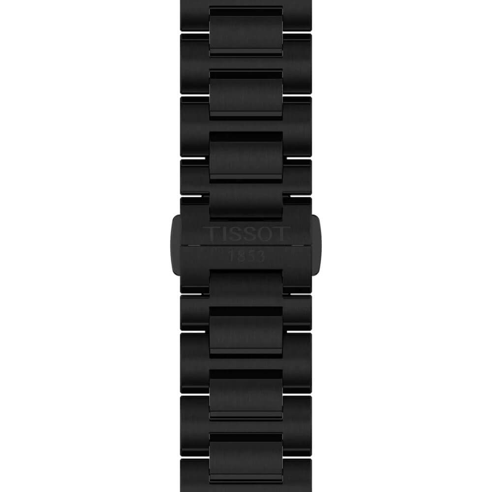 Koperta modelu PRC 100 Solar z powłoką PVD została wykonana z wysokogatunkowej stali szlachetnej, która nie tylko prezentuje się elegancko w czarnym wykończeniu, ale także jest odporna na korozję i bezpieczna dla skóry. Charakterystycznym elementem konstrukcji jest luneta o nietypowym dwunastokątnym kształcie, nadająca zegarkowi Tissot wyróżniający się, sportowy sznyt. Dzięki odpornemu na zarysowania szkłu szafirowemu tarcza jest doskonale chroniona przed uszkodzeniami mechanicznymi, zachowując przejrzystość na lata. Zegarek solarny Tissot T151.422.33.051.00 posiada solidny dekiel oraz wygodną, masywną bransoletę wykonaną również ze stali, wyposażoną w bezpieczne zapięcie motylkowe, które zapewnia komfortowe i pewne trzymanie na nadgarstku. Całość konstrukcji cechuje wysoka jakość wykonania i szczelność na poziomie 10 ATM (100 metrów), co gwarantuje odporność na wodę podczas codziennego użytkowania, a nawet rekreacyjnego pływania.