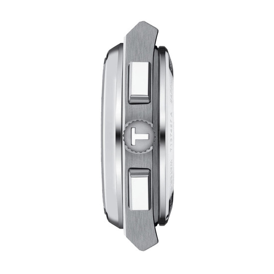 Tissot PRX Automatic Chronograph T137.427.11.041.00, to następna odsłona ekscytującej reedycji kultowego zegarka Tissot z końca lat. 70 w stylu pop-art. Tuż po dużym sukcesie modelu kwarcowego, Tissot zaprezentował długo wyczekiwany przez fanów zegarek automatyczny PRX 40 205, natomiast teraz nadszedł czas na wersję z chronografem! Najnowsze wydanie wyposażone jest w ikoniczny, szwajcarski mechanizm z automatycznym naciągiem Valjoux A05 H31, którego rezerwa chodu wynosi około 60 godzin. Odsłona ta prezentuje nowe, ekscytujące wzornictwo — tarcza w charakterystycznym motywie odwróconej pandy, na której spoczywają nałożone, indeksy i wskazówki wypełnione substancją luminescencyjną.