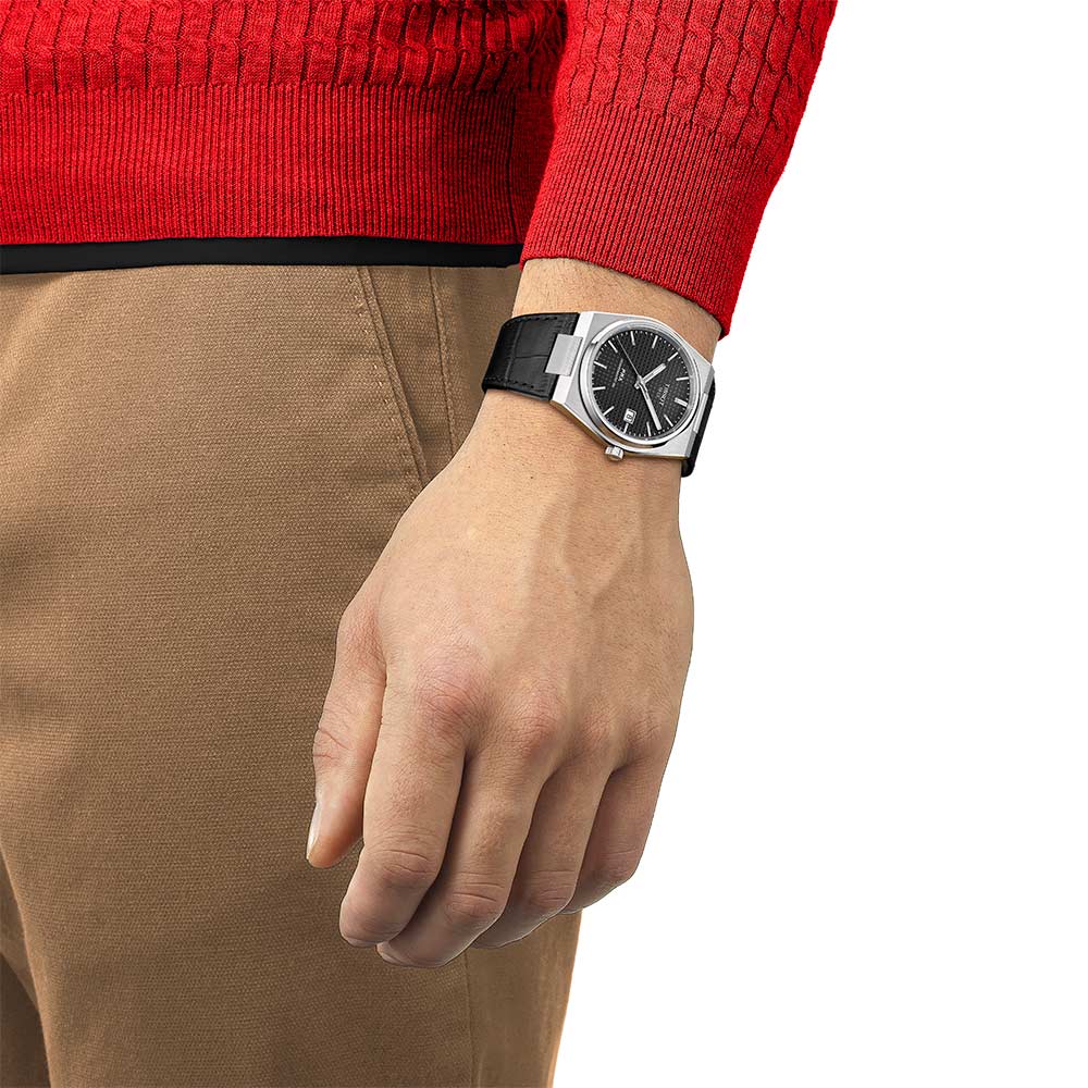 "Innovation by Tradition", to słynna dewiza producenta szwajcarskich zegarków Tissot, która najlepiej wyraża mistrzowski talent marki do tworzenia projektów inspirowanych oryginałami z lat wcześniejszych, adekwatnych do bieżących czasów. Tissot PRX, to zegarek z gładkim, cienkim i okrągłym pierścieniem, delikatną, płaską kopertą w kształcie "tonneau", jednocześnie smukłymi i wypukłymi indeksami pokrytymi Super-LumiNovą oraz skórzany pasek dopasowany do koperty. Korpus stanowi męskie połączenie pionowego, szczotkowanego wykończenia i skośnego polerowania. System i konstrukcja paska umożliwiają idealne przyleganie oraz ergonomiczne dopasowanie czasomierza do każdego typu nadgarstka.