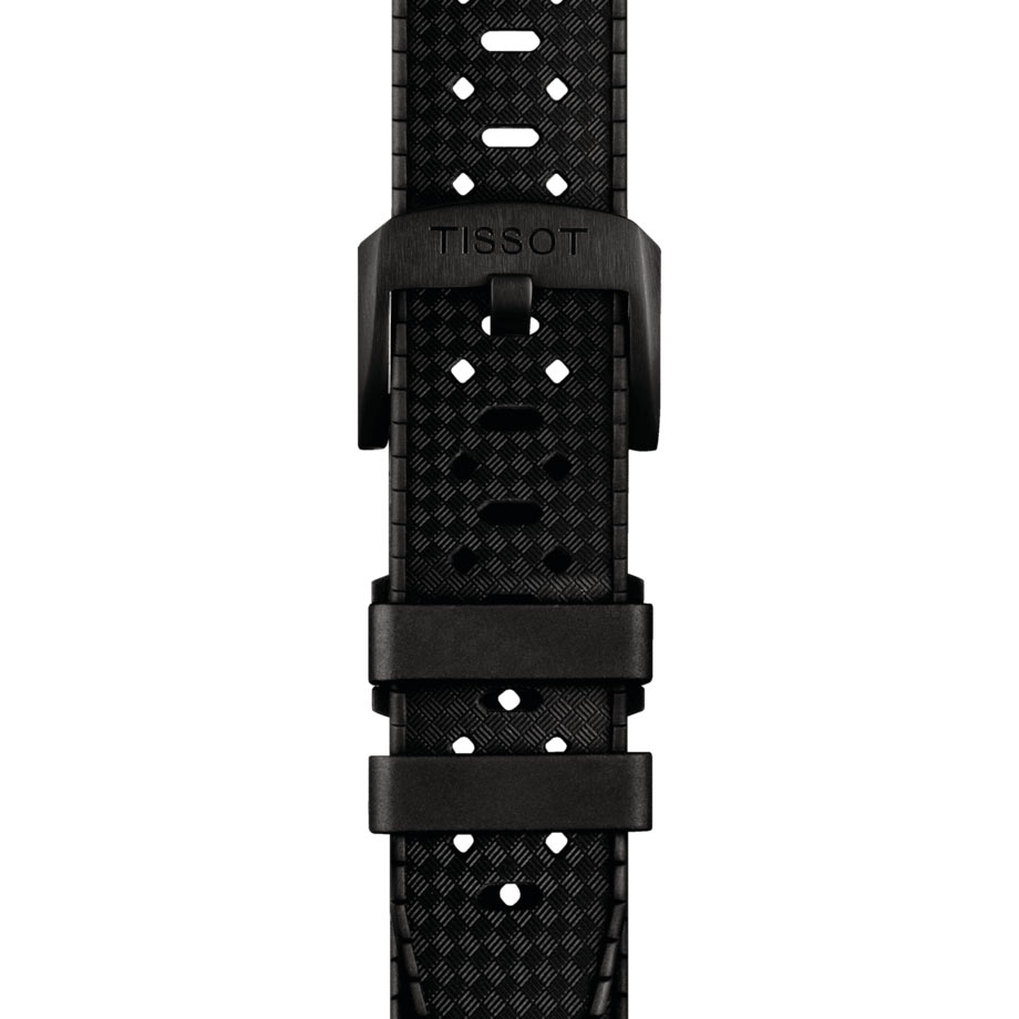 Na przedniej części zegarek Tissot wyposażony został w czarną, obrotową lunetę z mineralną wkładką. Na niej naniesiona jest skala minutowa, która ułatwi śledzenie upływającego czasu na przykład w chwili zanurzenia. Kolejnym elementem jest najwyższej jakości szkło szafirowe z antyrefleksem, który odbija promienie światła, co zwiększa czytelność tarczy. Tissot T120.807.37.041.00 oferuje niezwykle czytelną, gradientową tarczę w kolorze niebieskim. Wskazówki i indeksy w stylu nurkowym wypełnione zostały szwajcarską masą luminescencyjną Super-LumiNova®. Tarcza jest czytelna w każdych warunkach oświetleniowych. Funkcjonalność uzupełnia datownik. Okno na godzinie szóstej wskazuje aktualny dzień miesiąca.