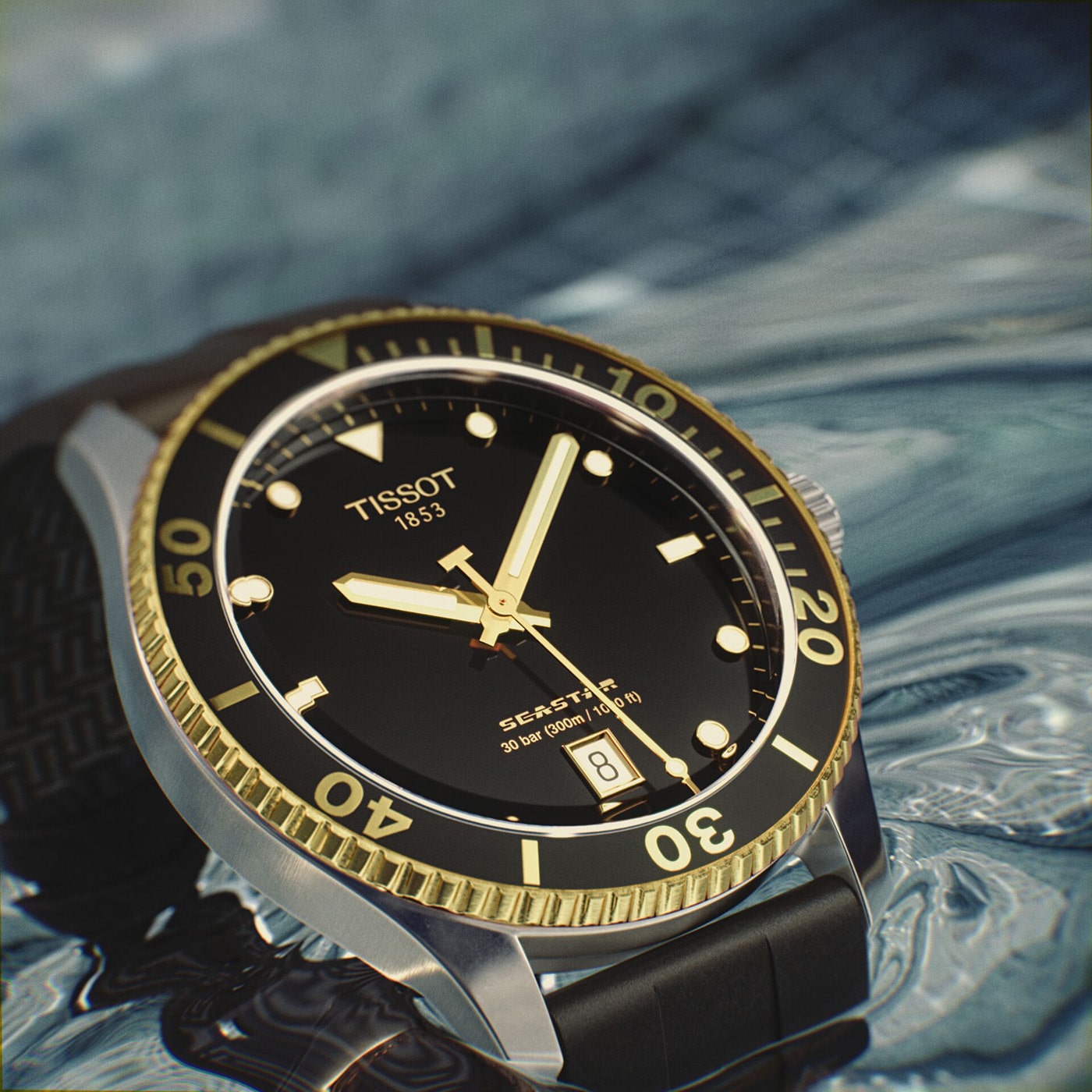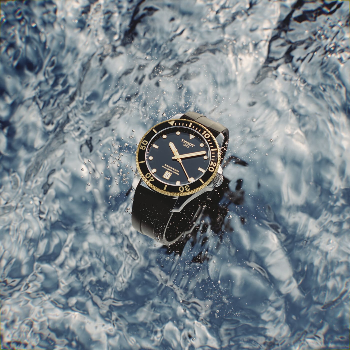 Nurkowy czasomierz od szwajcarskiej marki zegarmistrzowskiej Tissot. Zegarek Tissot Seastar 1000 to przykład godnego towarzysza do uprawiania sportów wodnych, ale i nie tylko. Tissot prezentuje kultowy zegarek ze sportowej rodziny zegarków Seastar 1000 w czarnej kolorystyce.